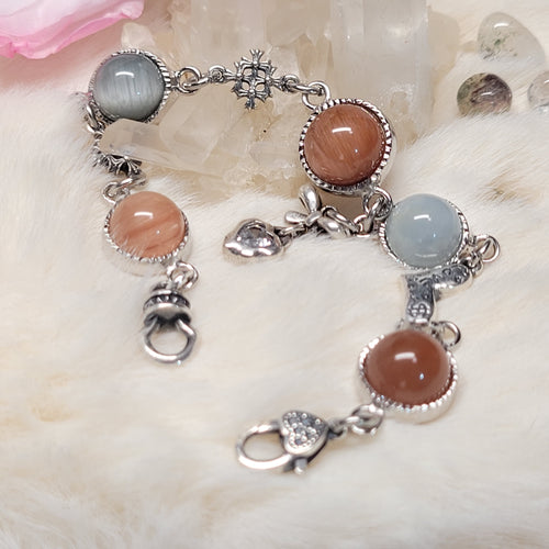 • 0683 粉橙藍兔毛S925純銀設計款手鏈