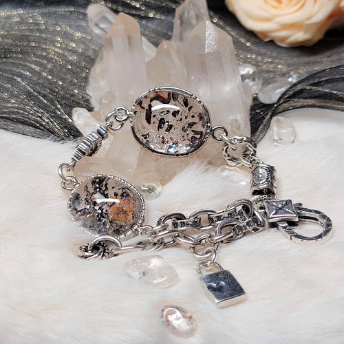 • 0672 雲母黑超七共生礦2粒S925純銀設計款手鏈