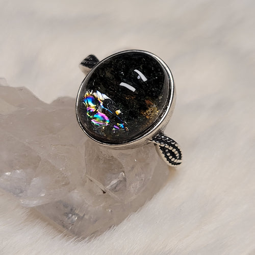 0259 綠幽靈彩虹片戒指S925純銀戒指(不限指圍)
