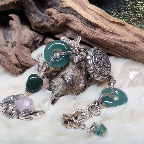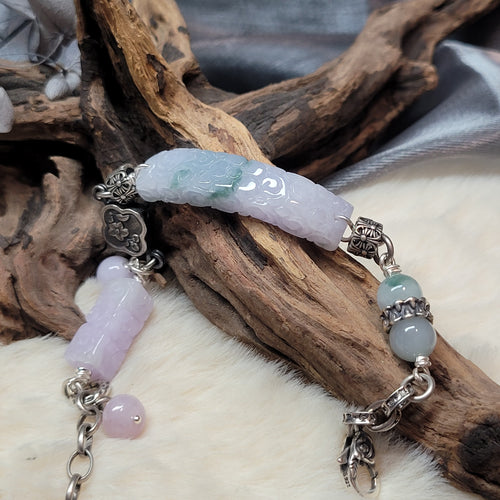 1229 A貨翡翠紫飘花手牌銀手鏈