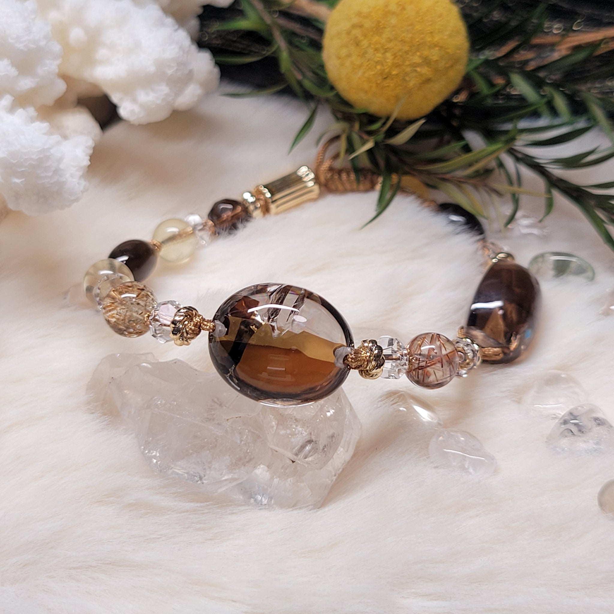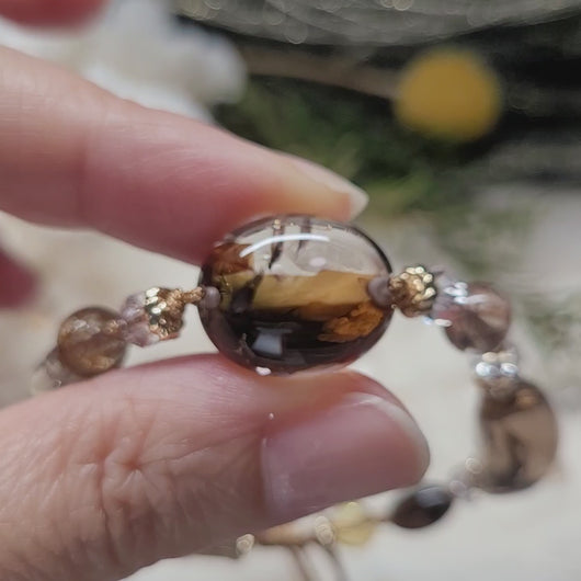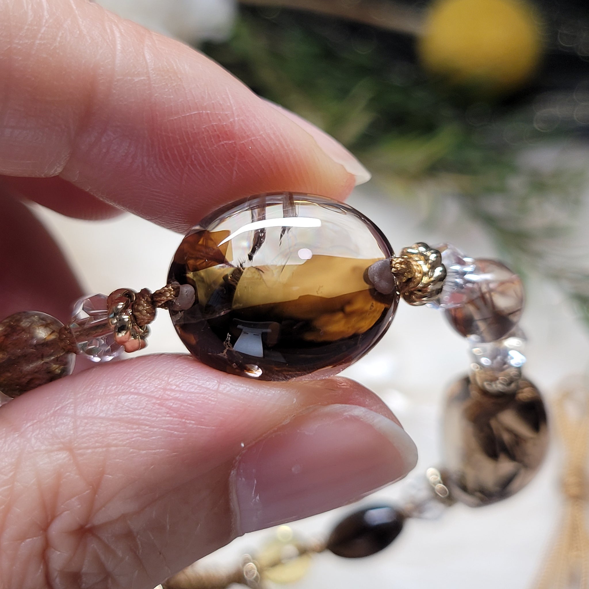 0882 雲母+茶阿賽2粒手編手繩