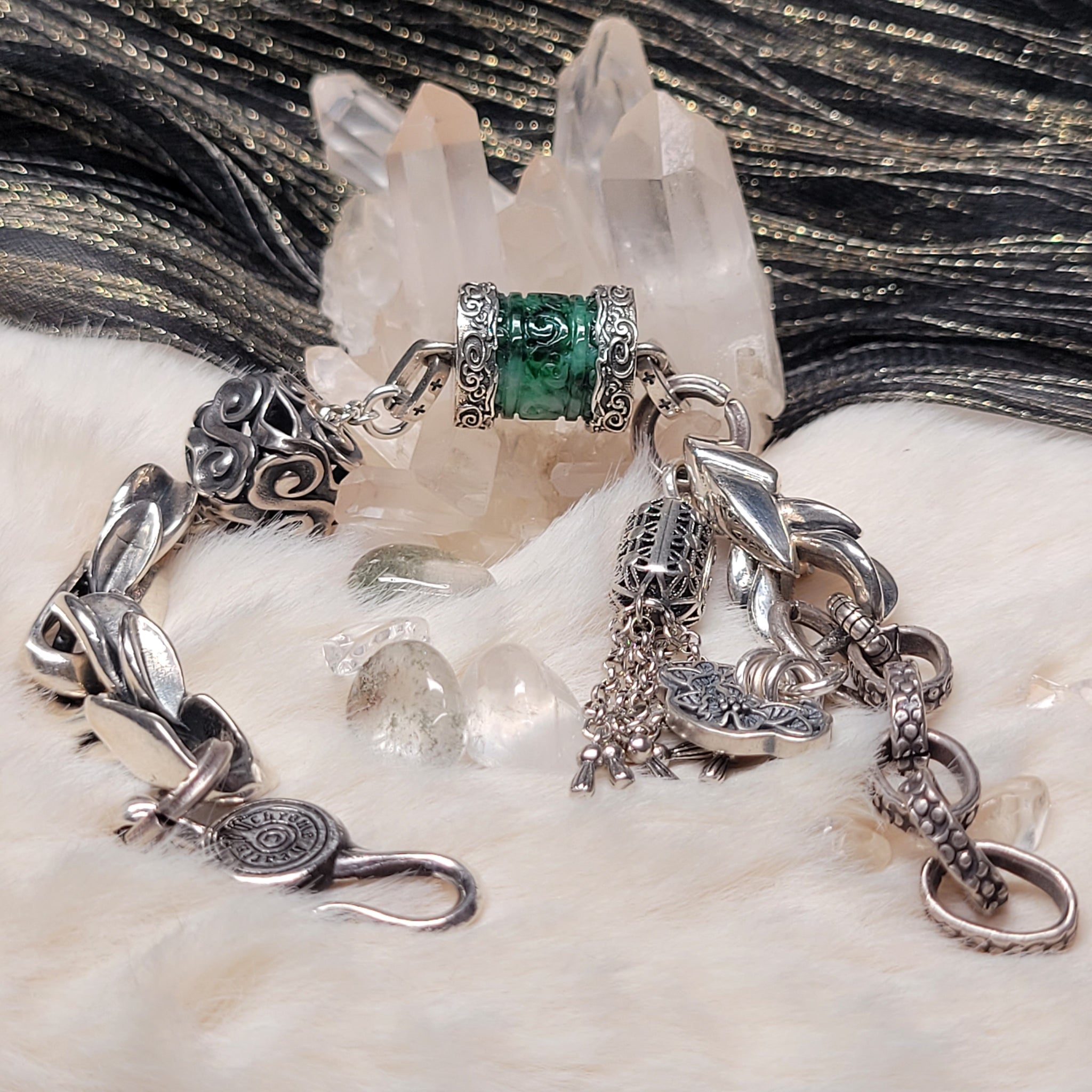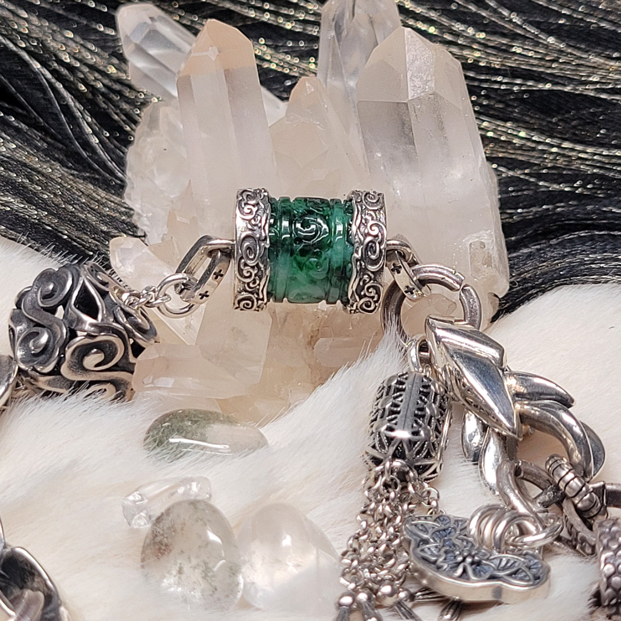0935 花青翡翠桶珠S925純銀設計款手鏈