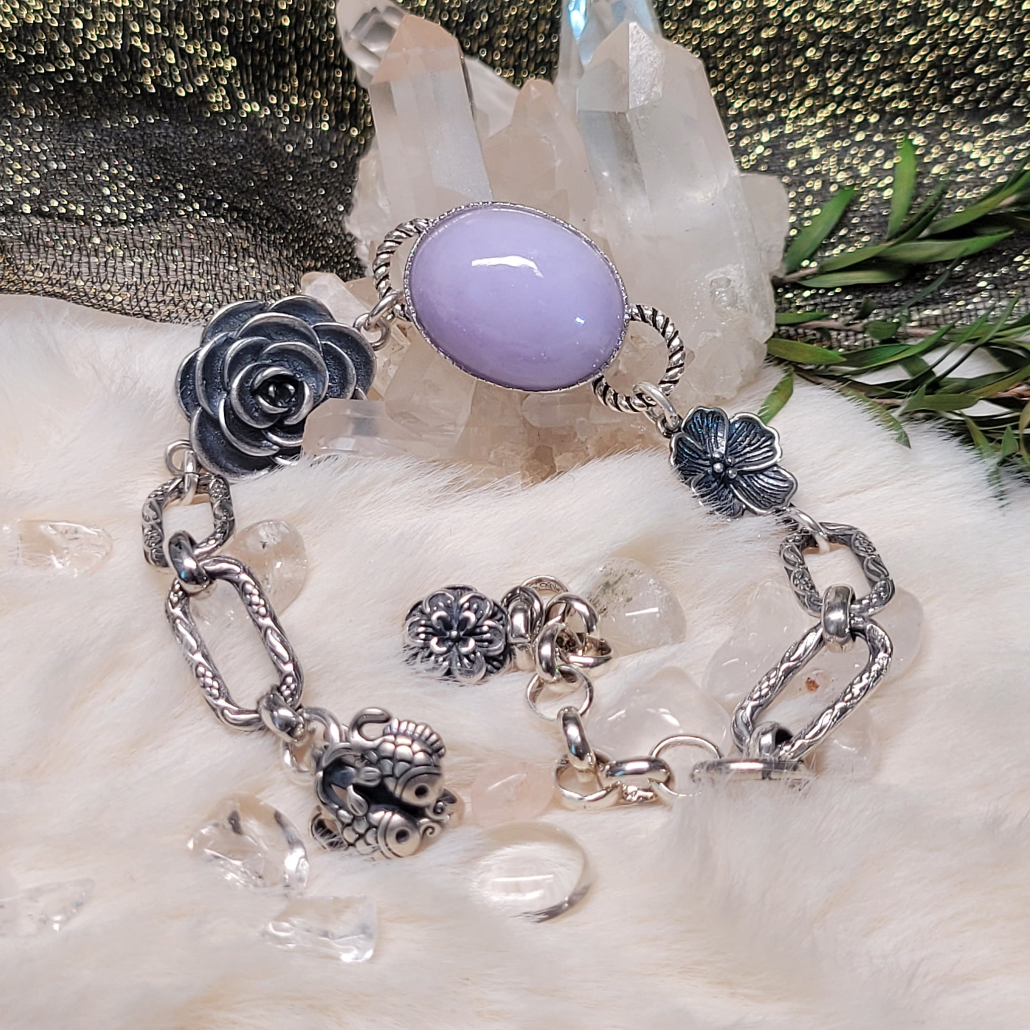 1071 紫翡蛋面S925純銀設計款手鏈