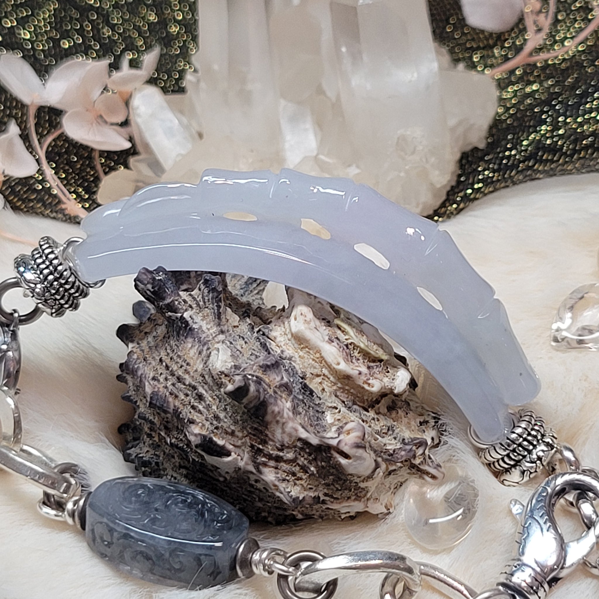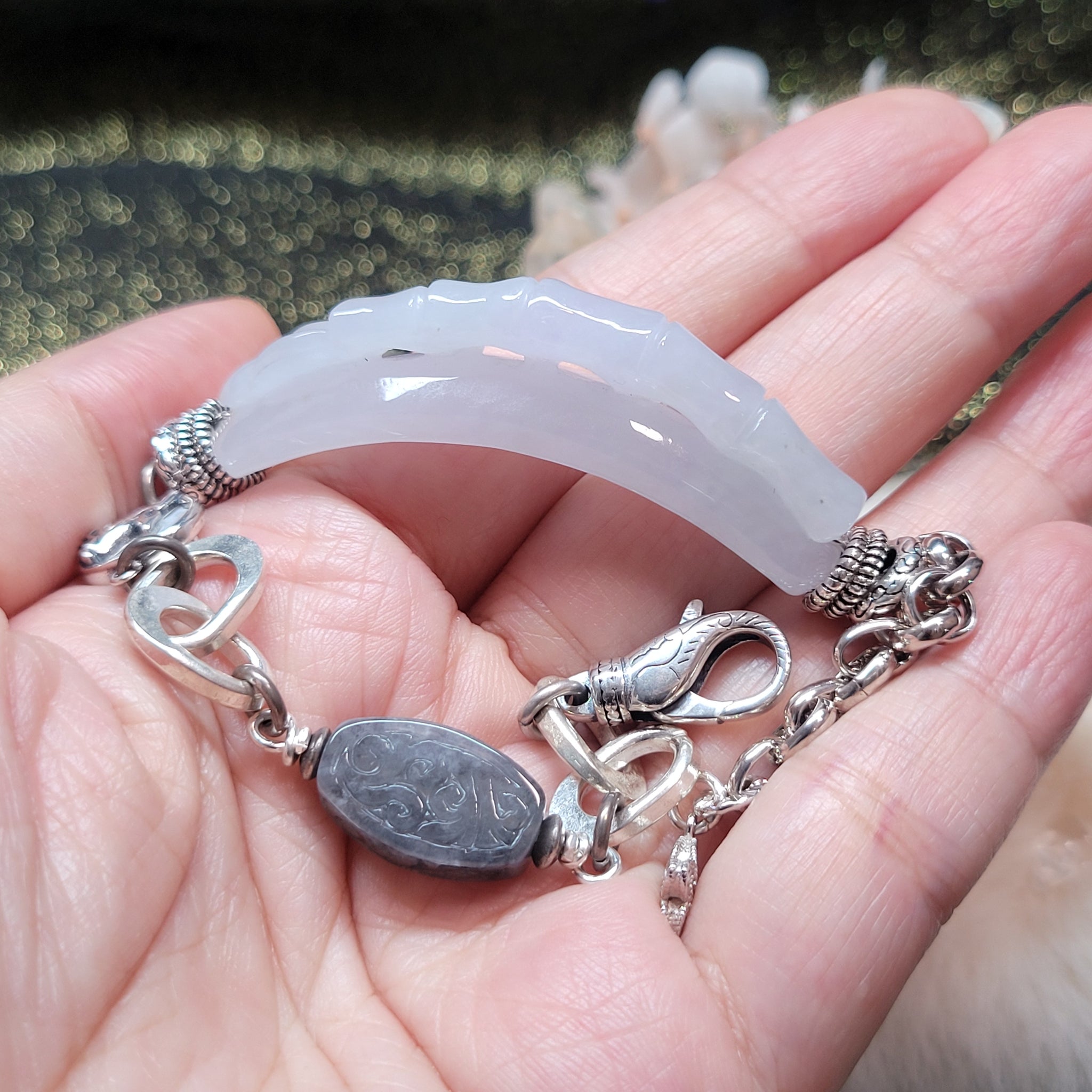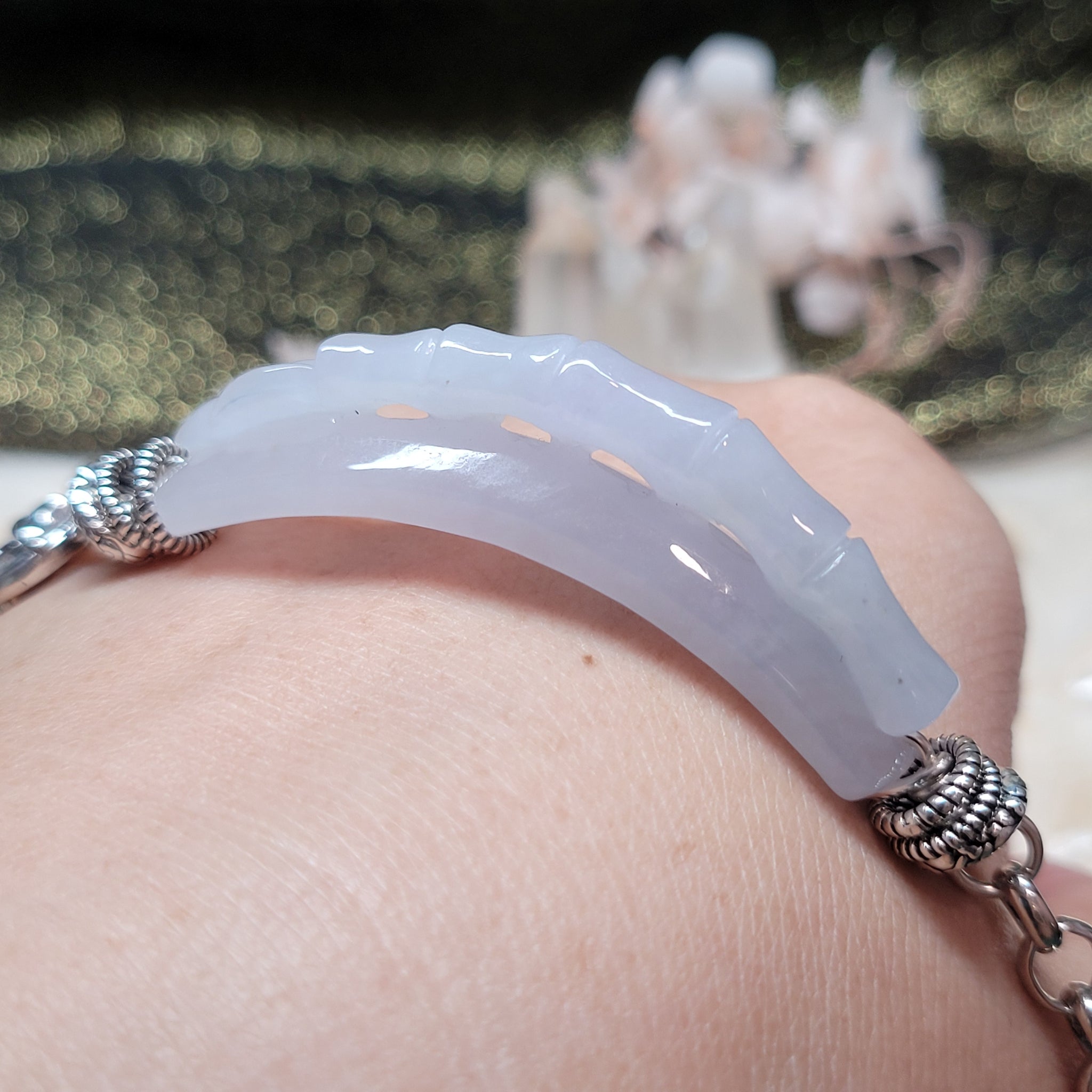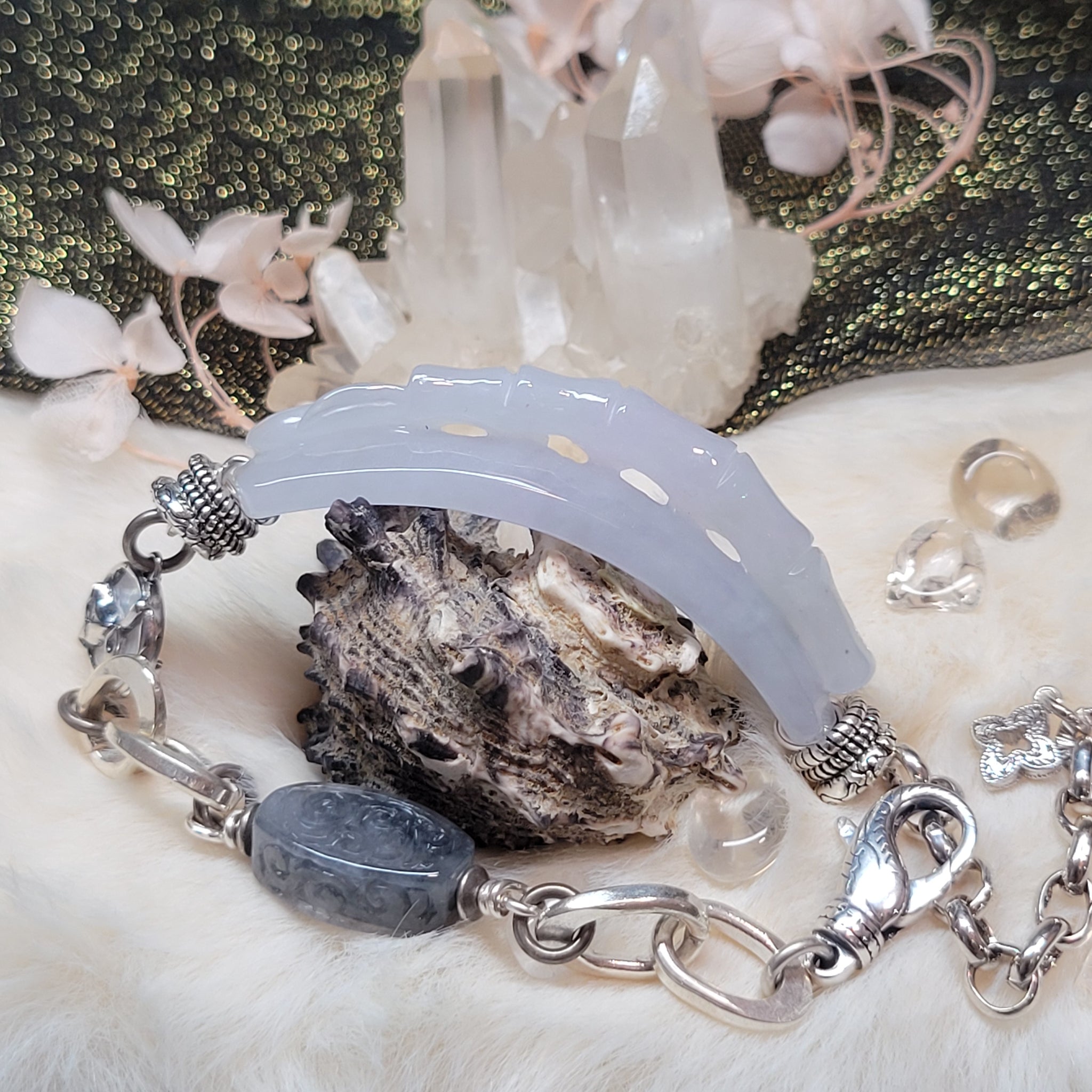 1217 A貨翡翠立體雕刻冰竹節銀手鏈