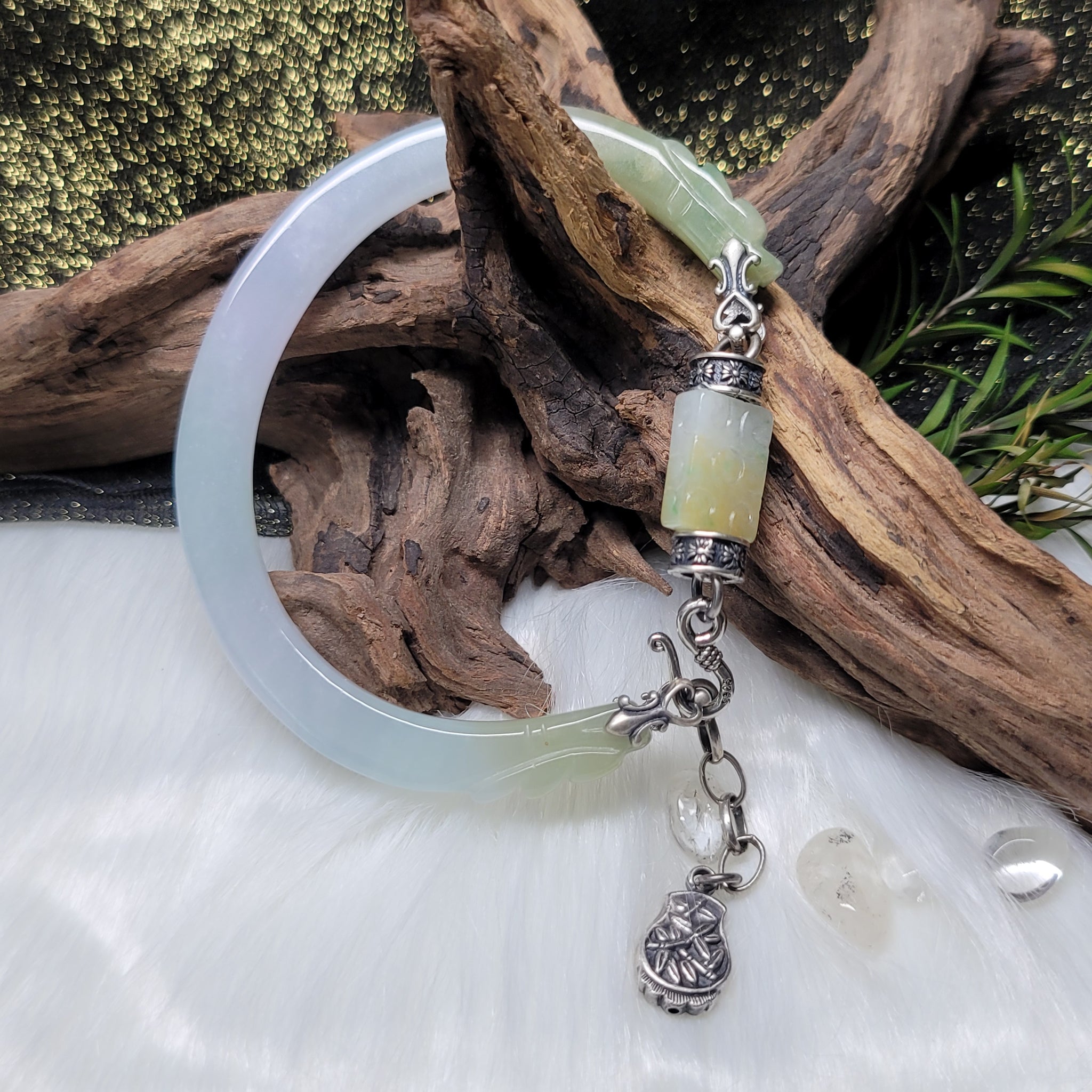 1219 A貨翡翠冰黃半鐲銀手鏈