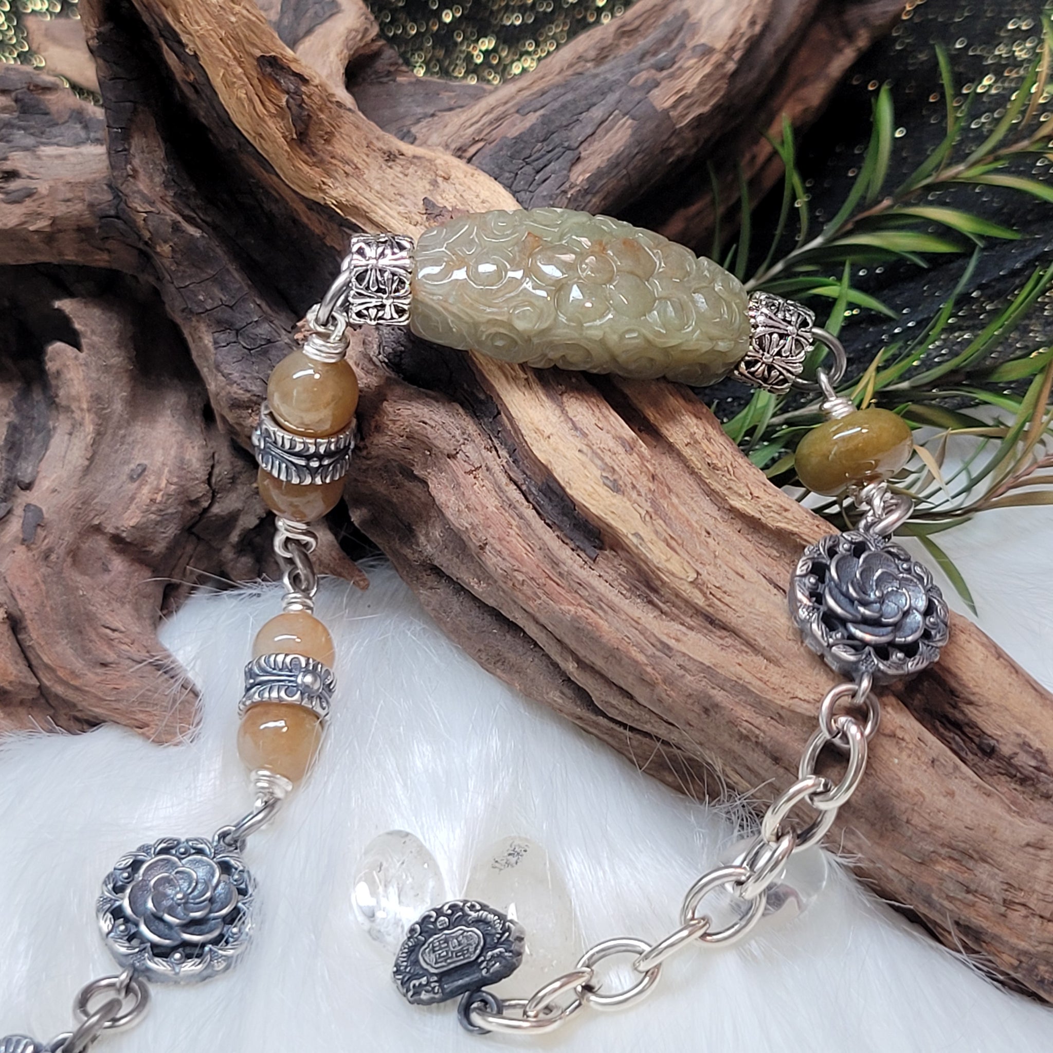 1222 A貨翡翠秋香綠灑金銀手鏈