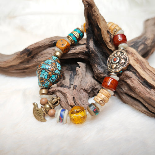 1099 雙牙牙水紋+寶瓶+四眼法螺手編頸鏈