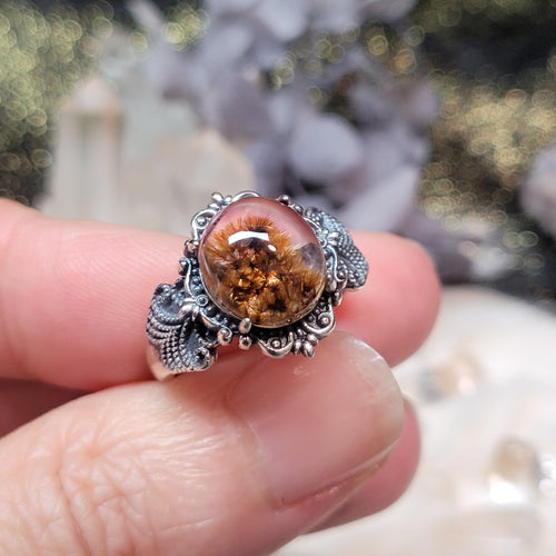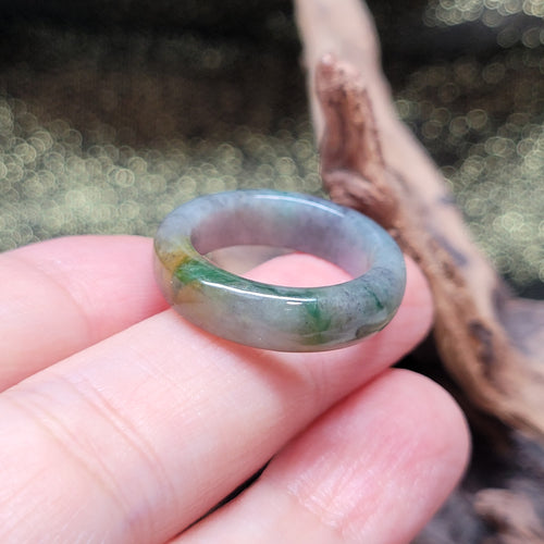 1289 A貨翡翠冰黃花花定製款925銀戒指
