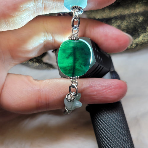 1222 A貨翡翠秋香綠灑金銀手鏈