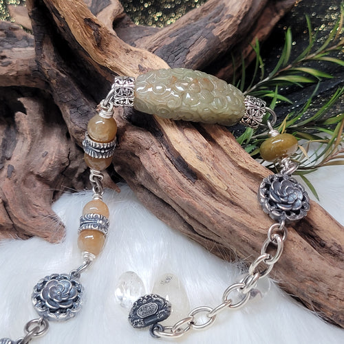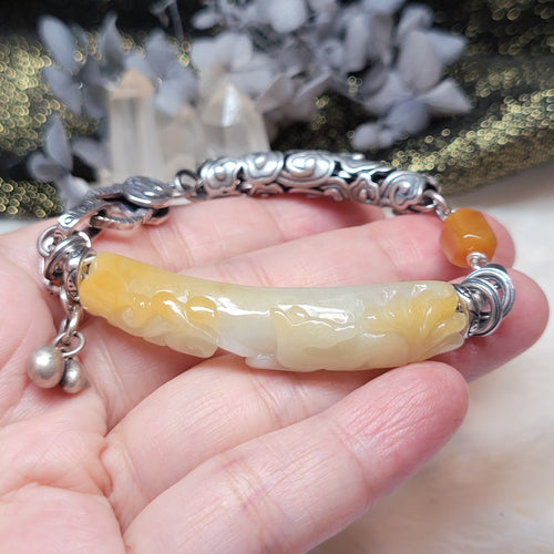1213 A貨翡翠黃九尾手牌銀手鏈