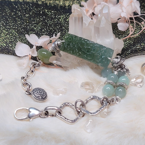 1217 A貨翡翠立體雕刻冰竹節銀手鏈