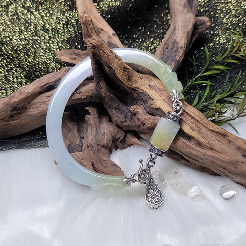 1219 A貨翡翠冰黃半鐲銀手鏈