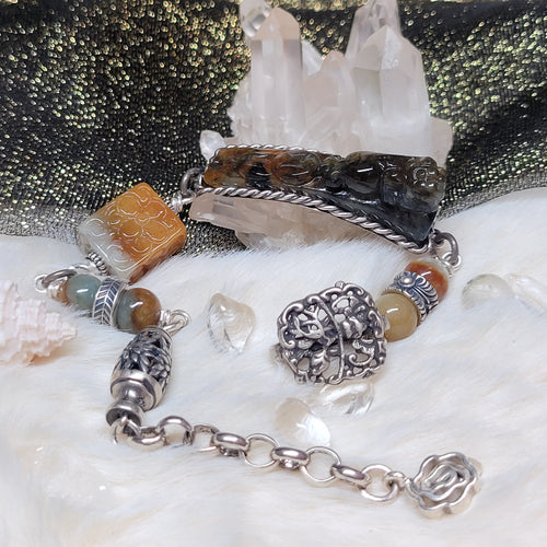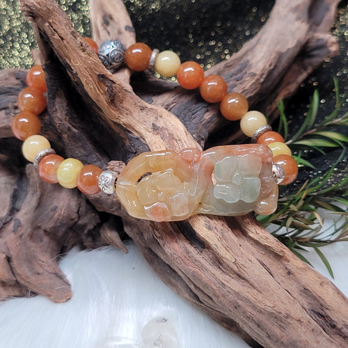 1203 A貨翡翠三彩鏤空雕刻花牌手串