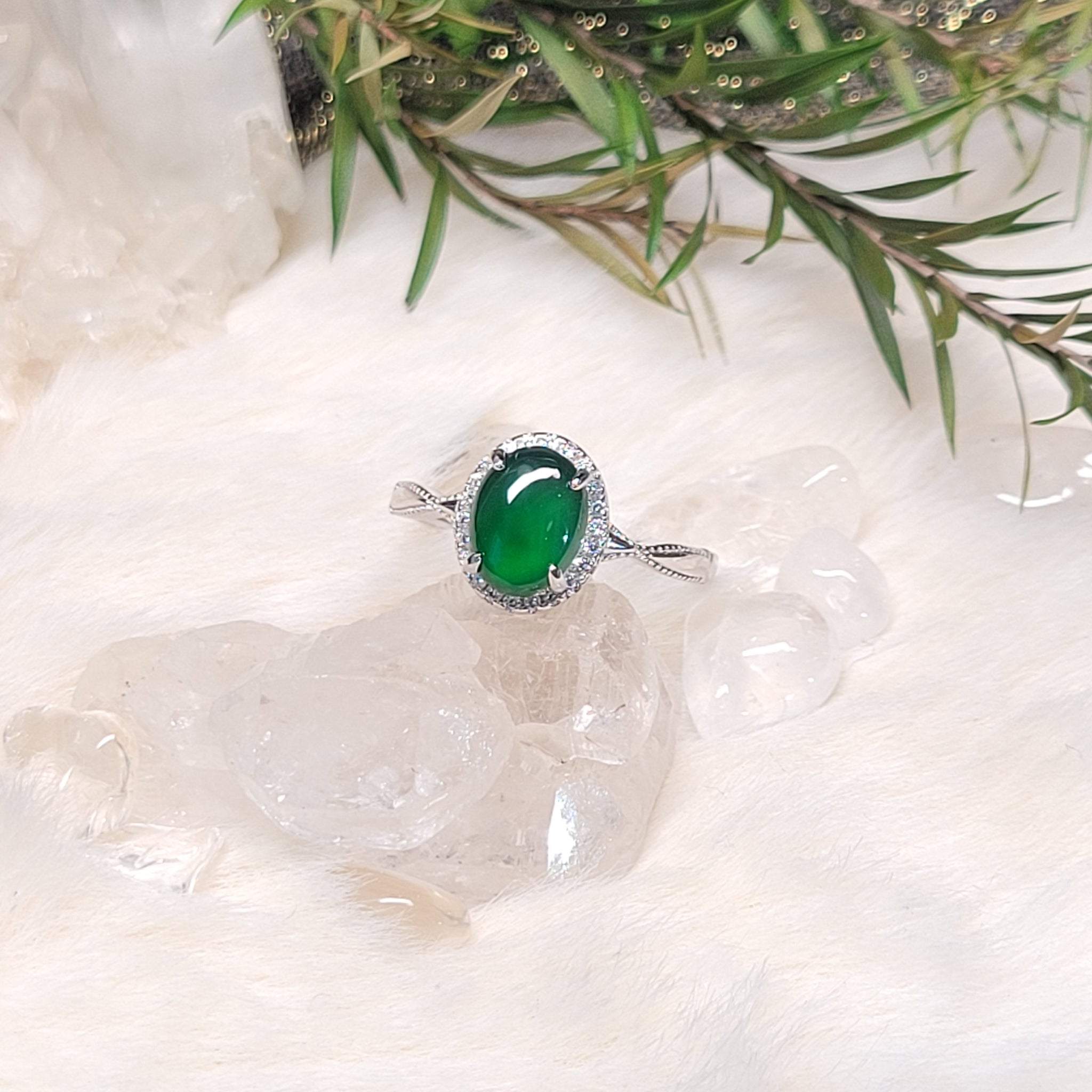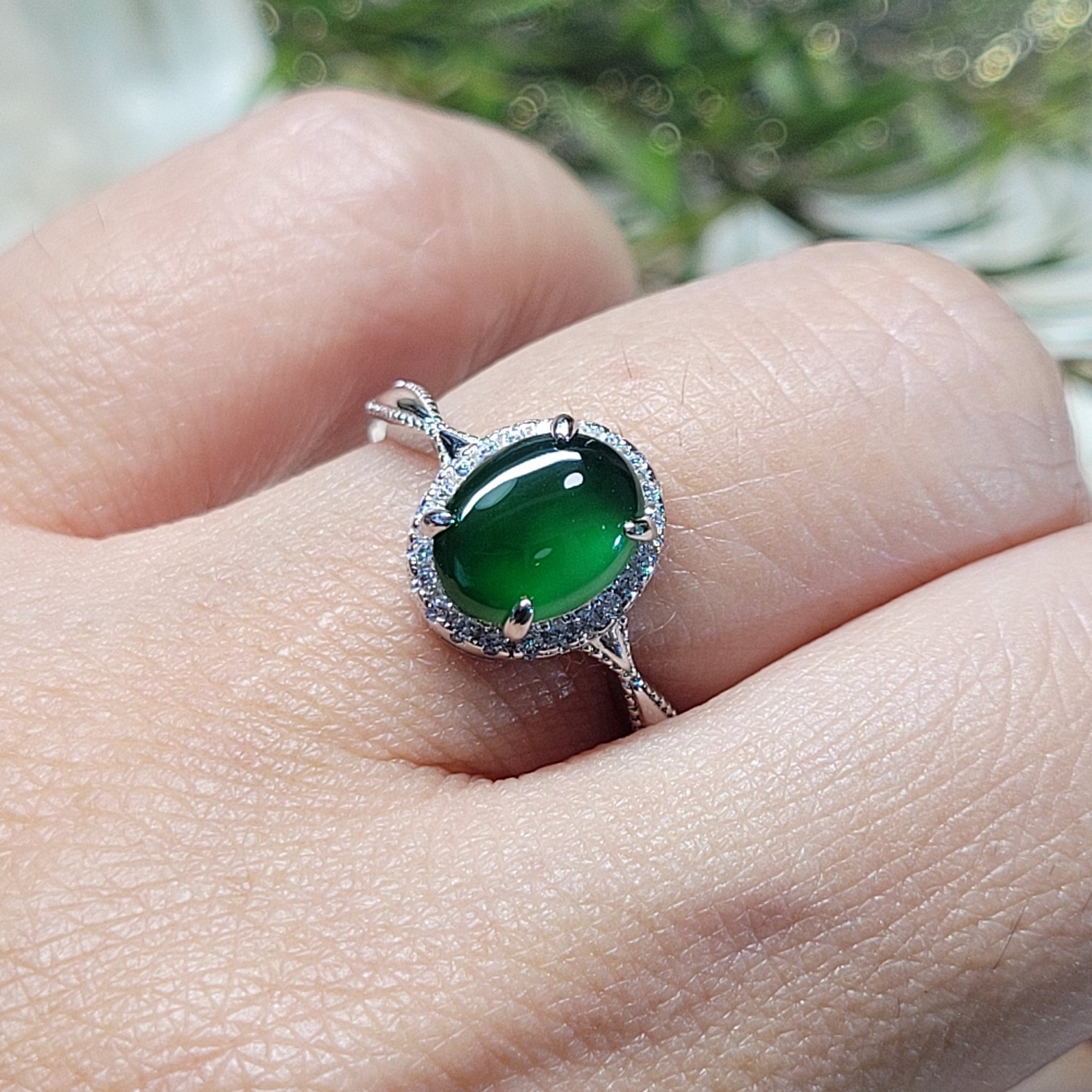 陽綠色翡翠S925純銀戒指(不限指圍)