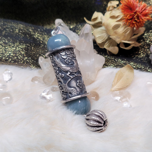 1248 A貨翡翠藍水翡翠銀桶珠吊墜