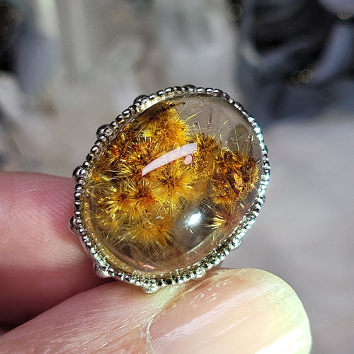 1177 血珀鑲嵌珠重工設計戒指