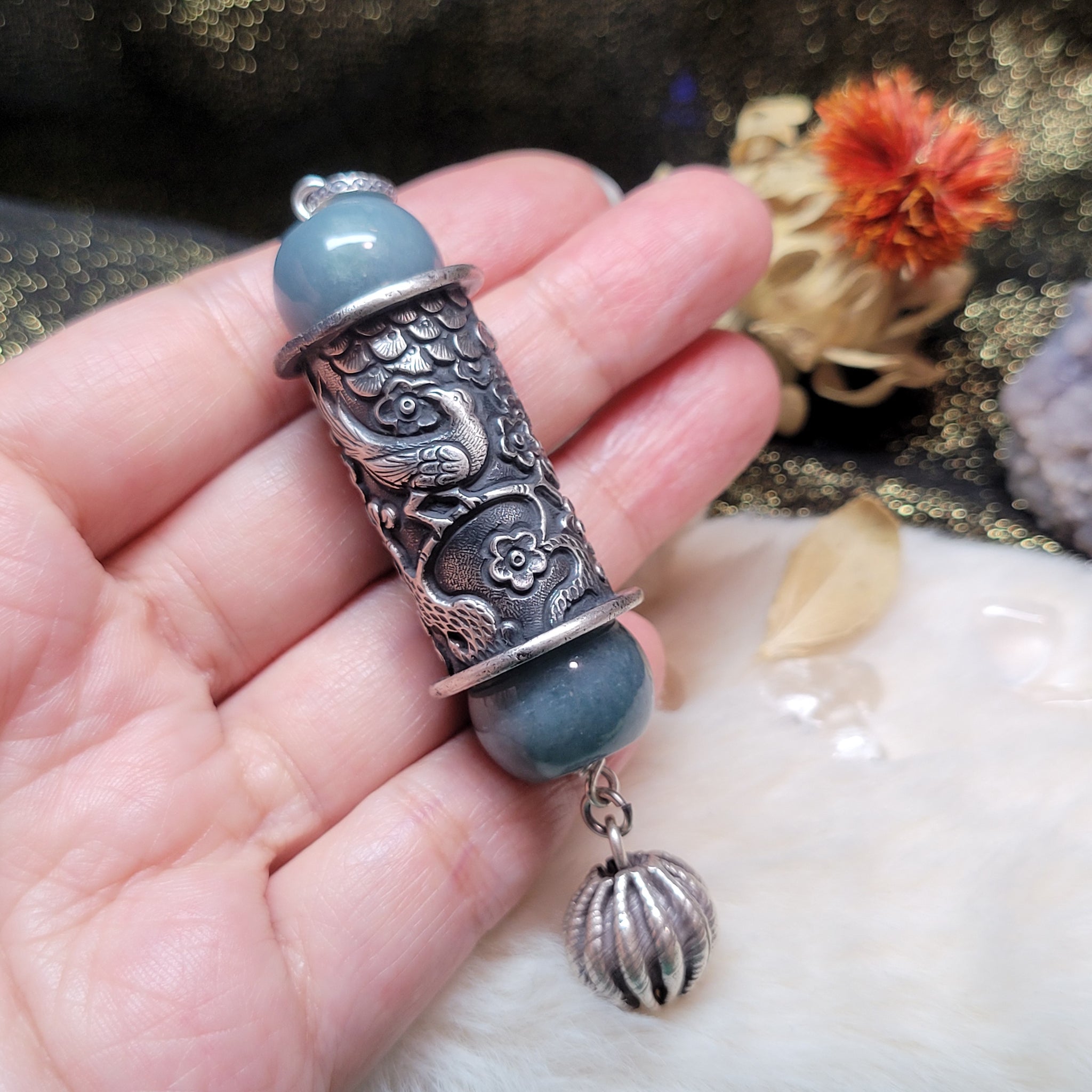 1248 A貨翡翠藍水翡翠銀桶珠吊墜