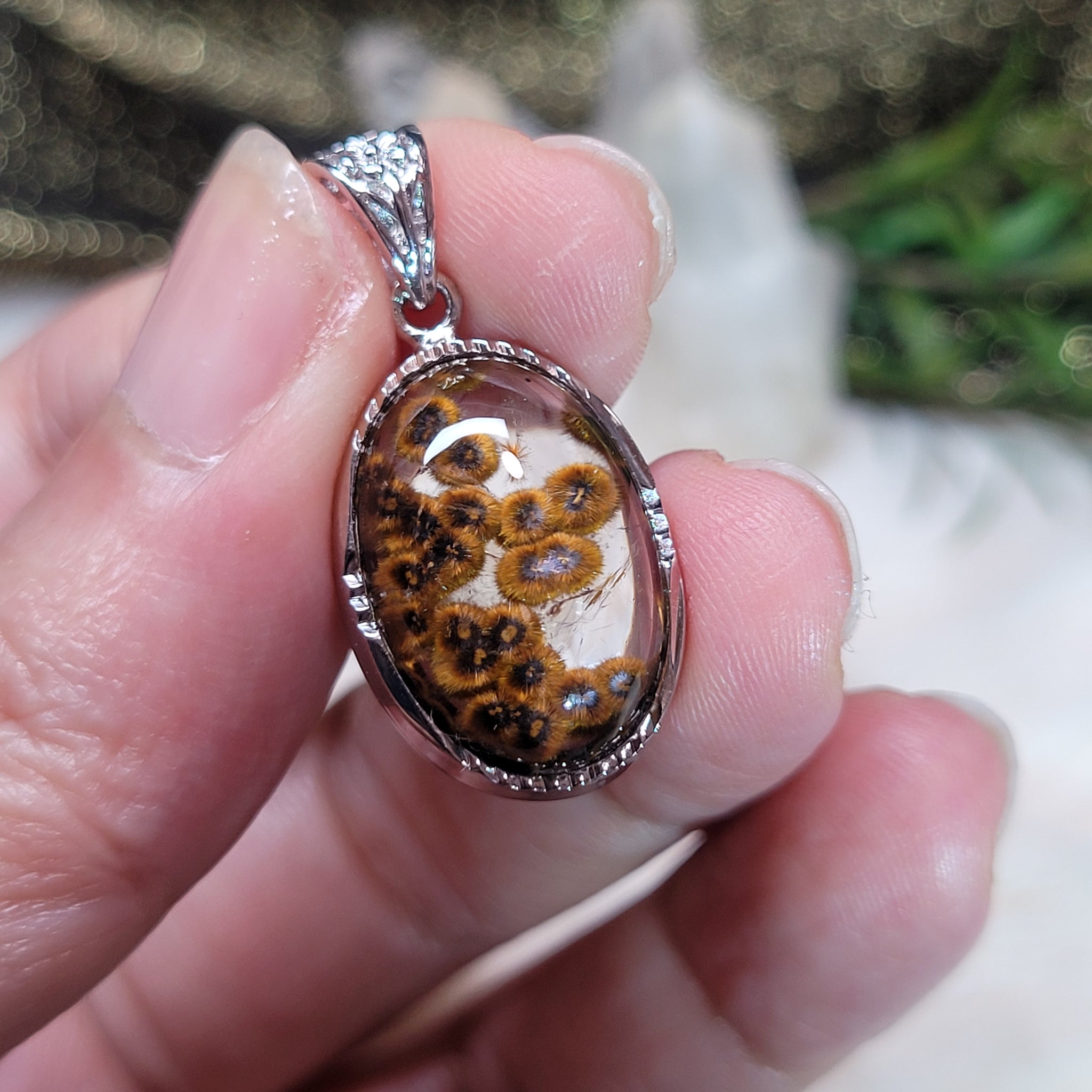 針鐵礦925銀包邊吊墜