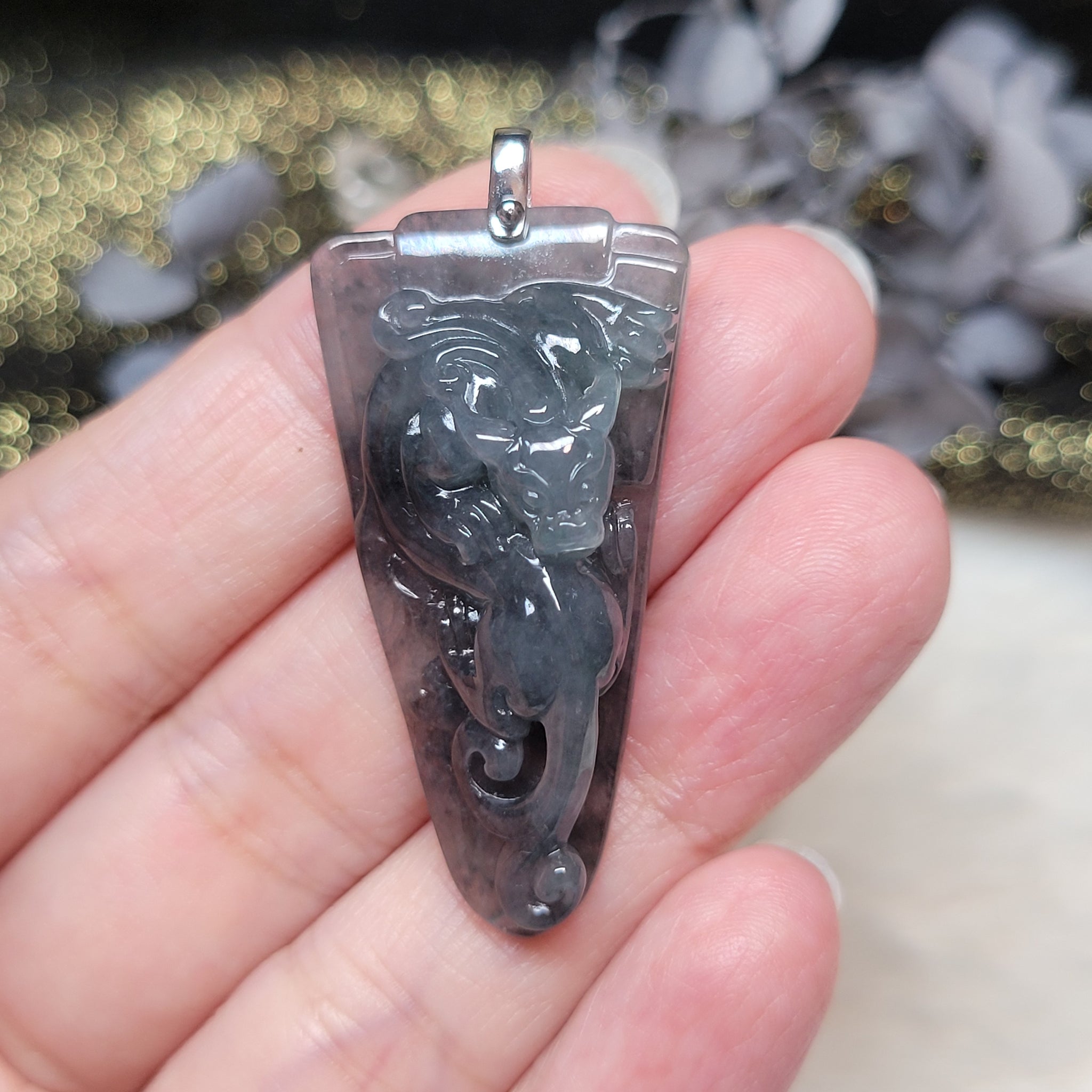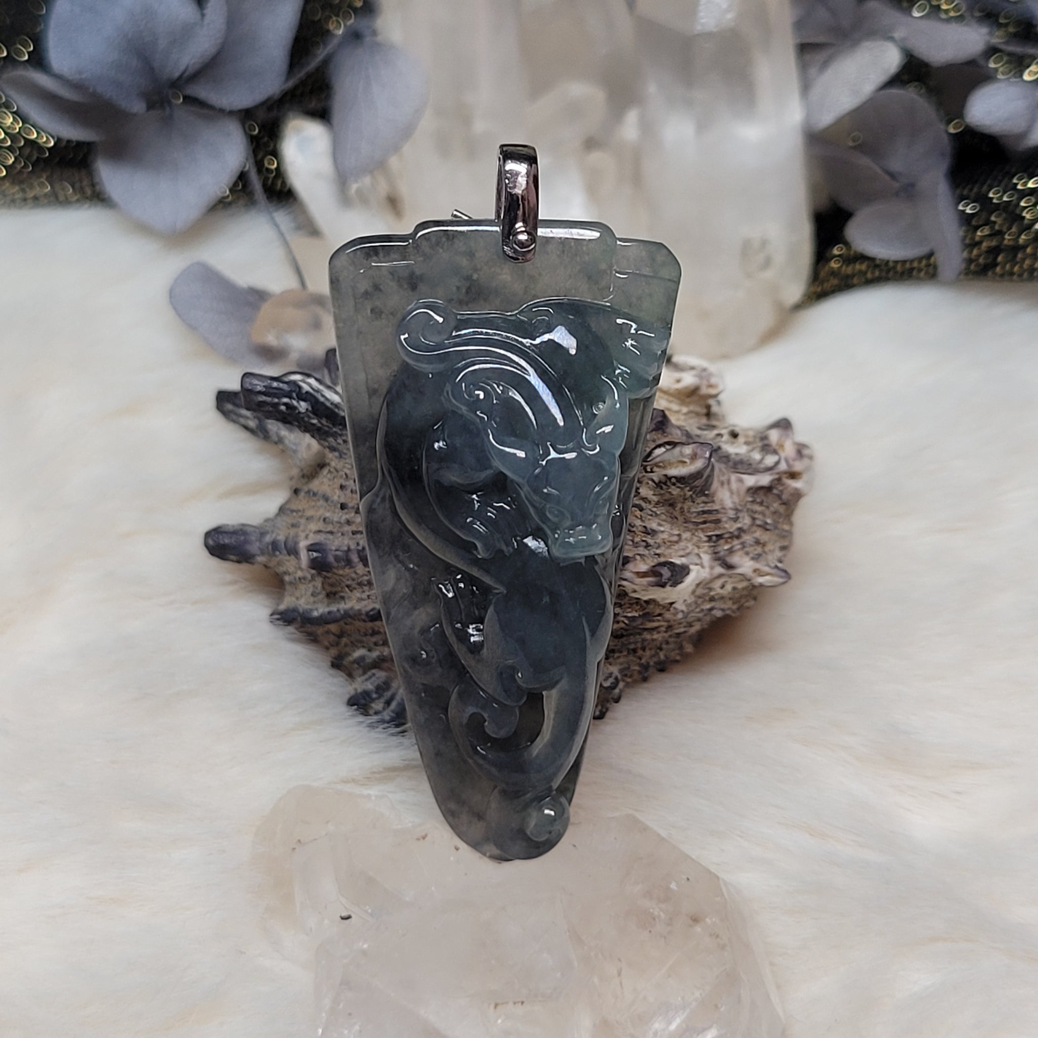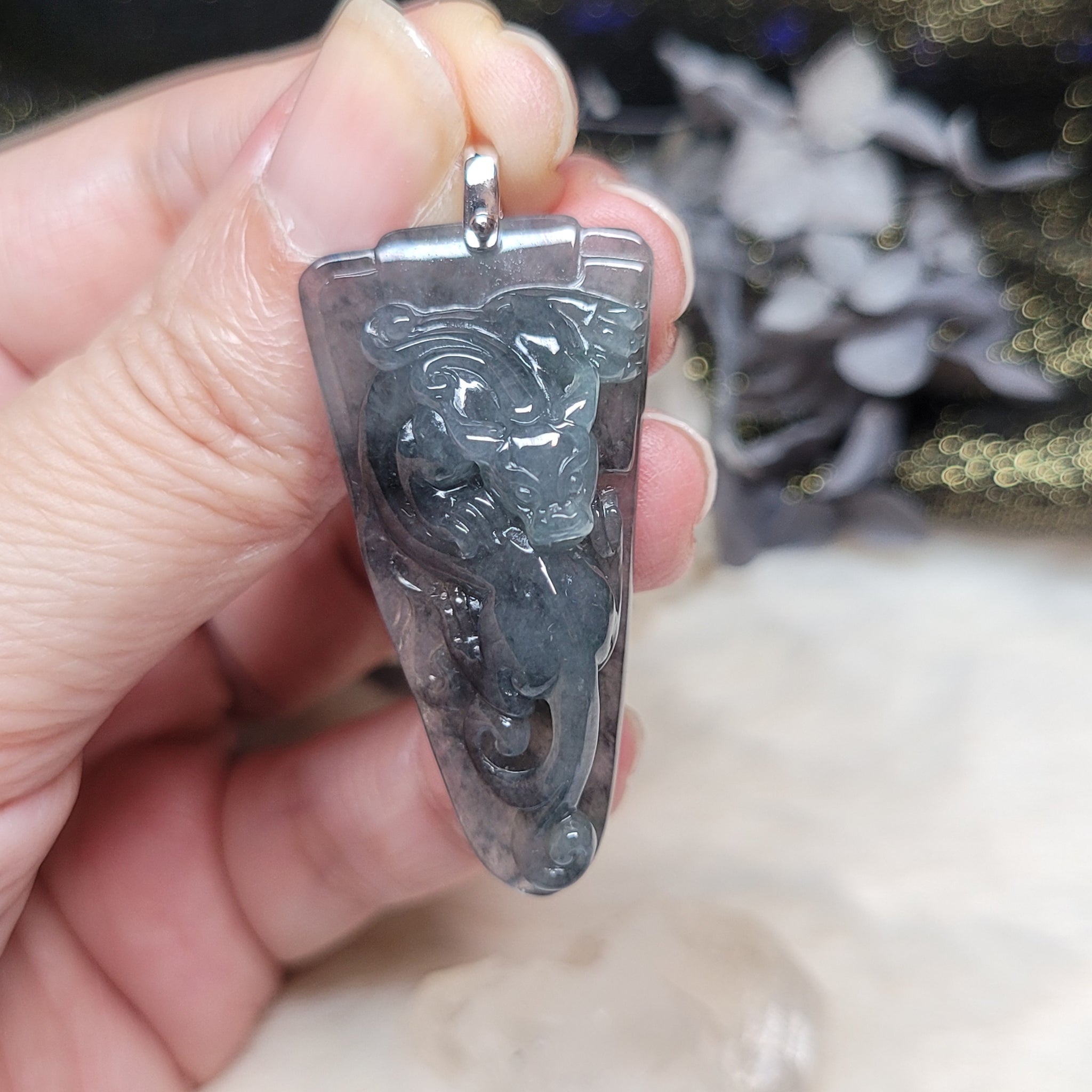 1258 A貨翡翠冰烏雞翡翠龍牌吊墜