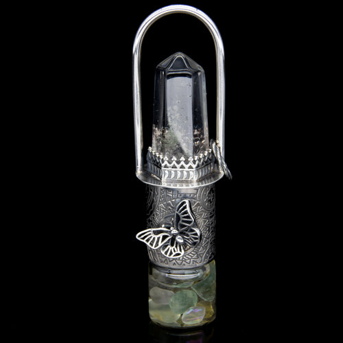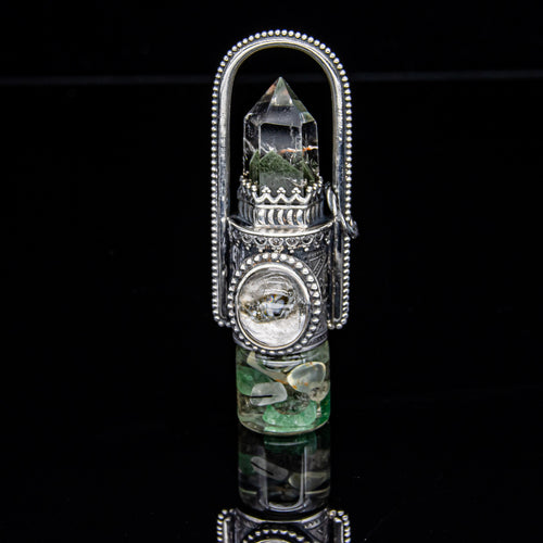 • Rollerball Necklace Series - Green Pyramid Phantom with Green Euthlorite/Mica Quartz