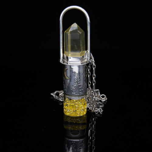 Lagoon Sunlight Rollerball Necklace Series - Citrine on Rain Forest Pattern