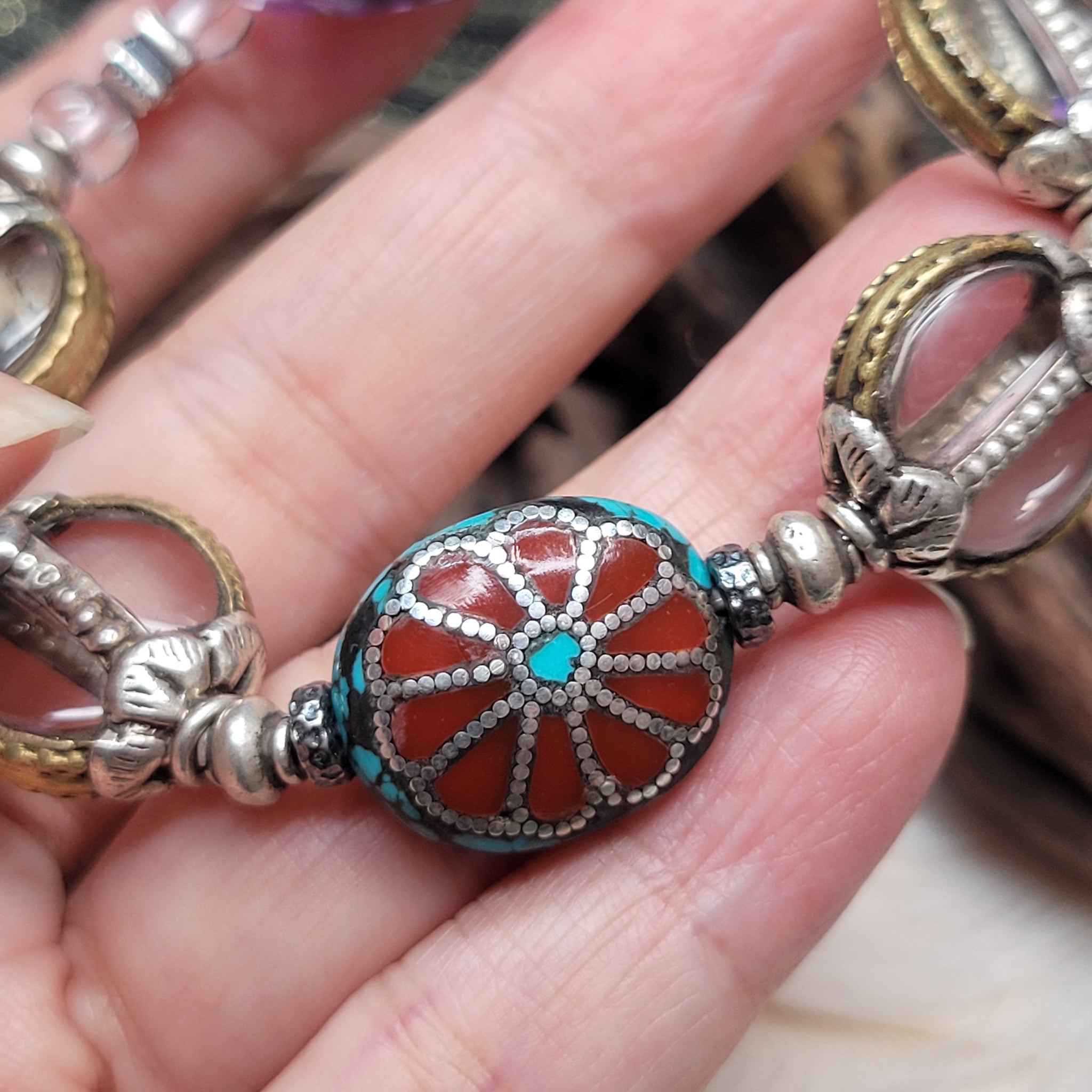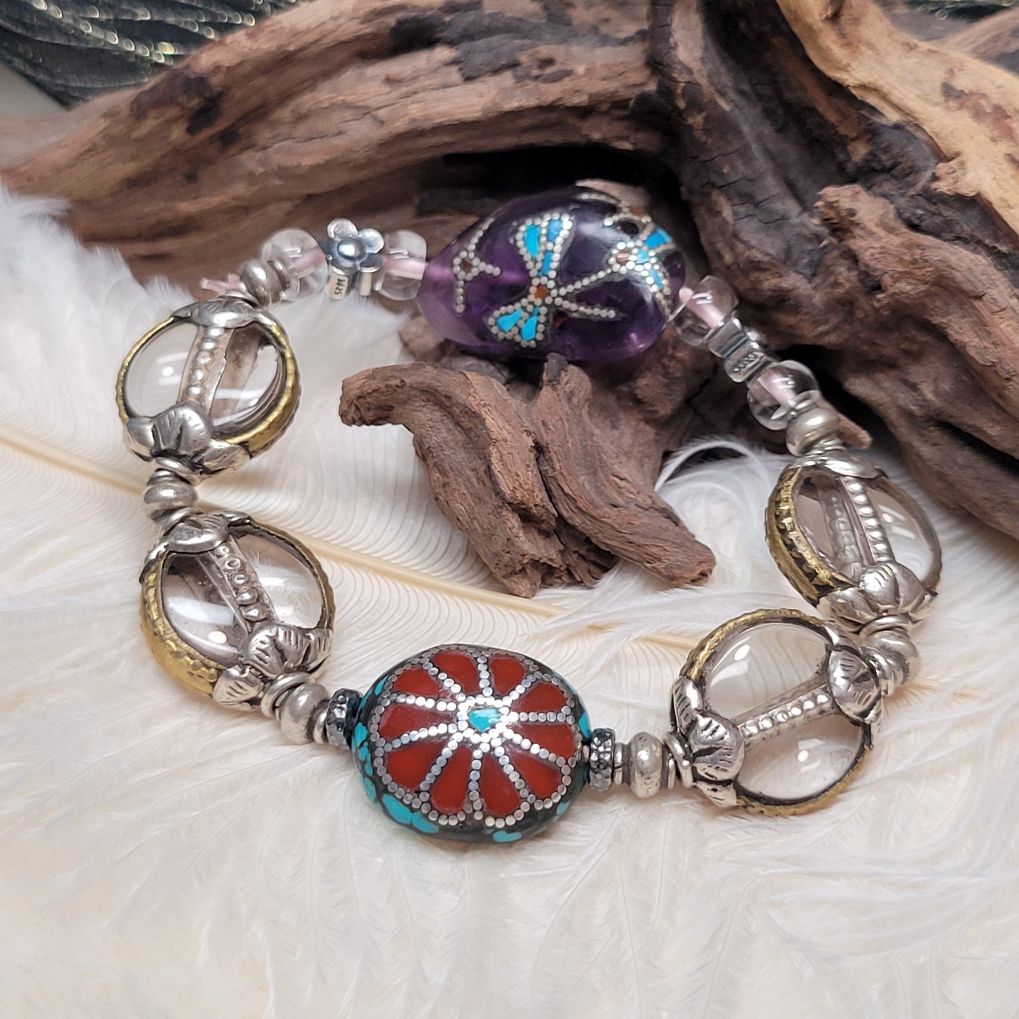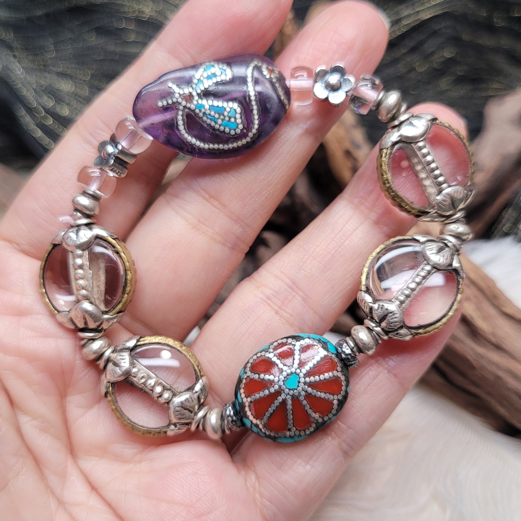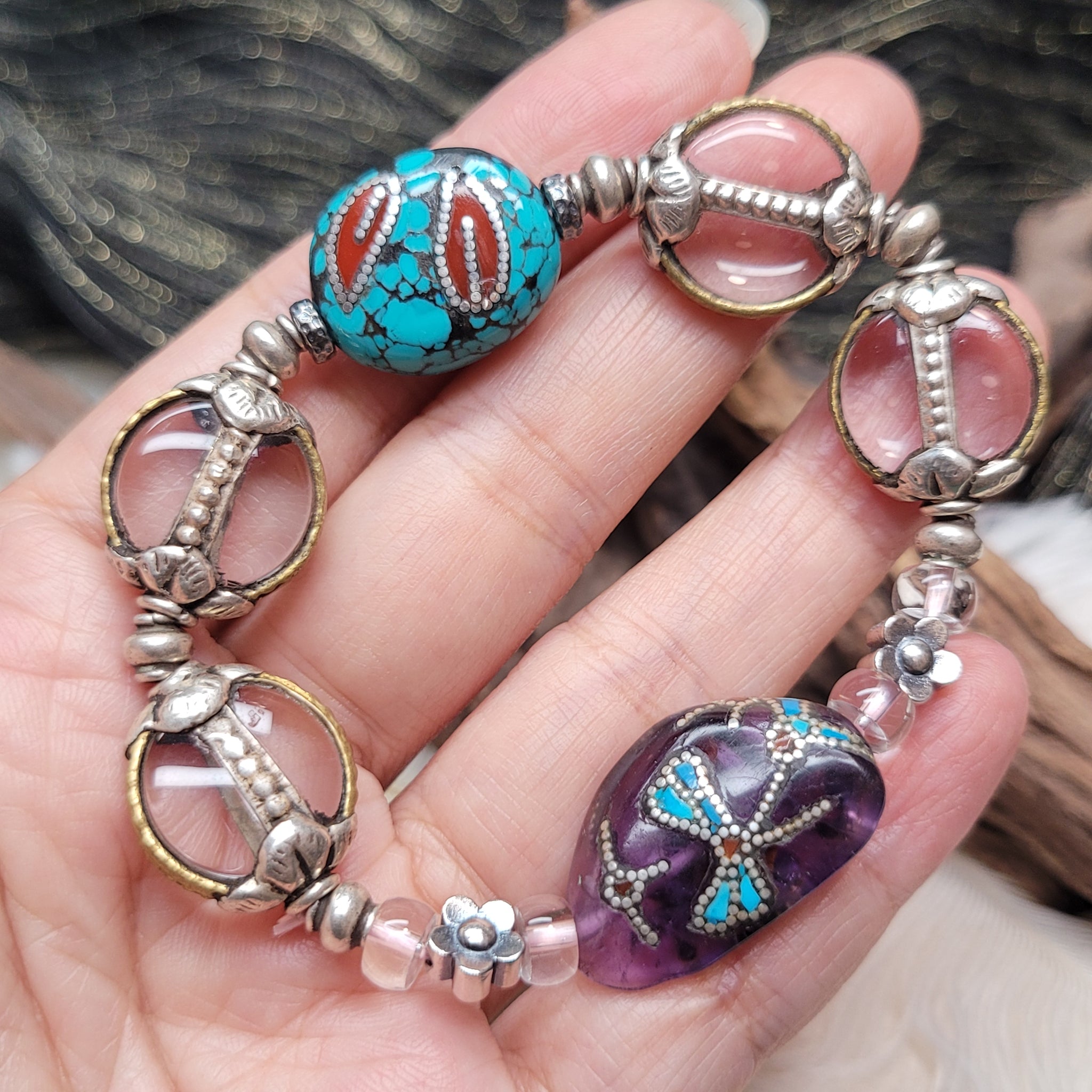 紫水晶松石白水晶手串