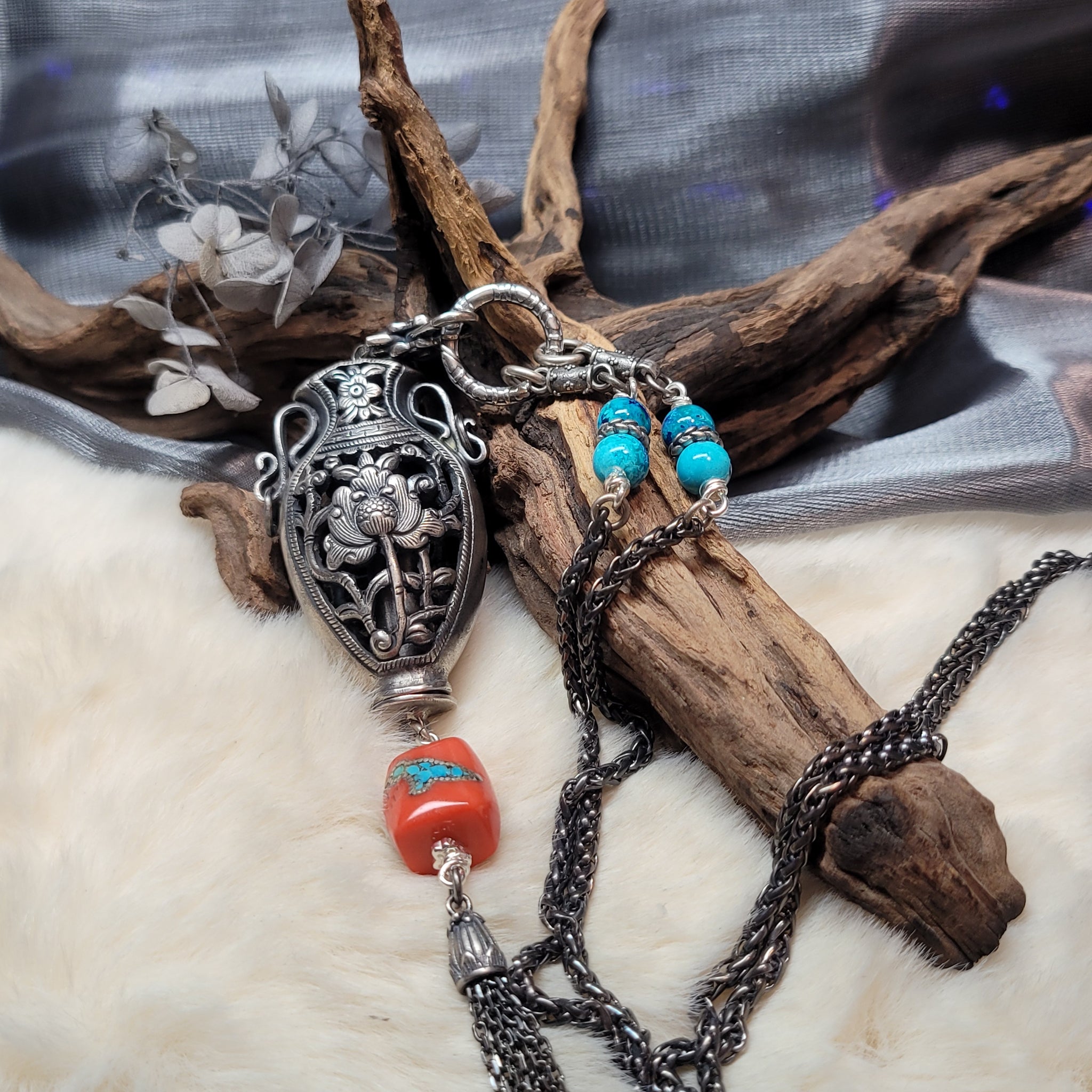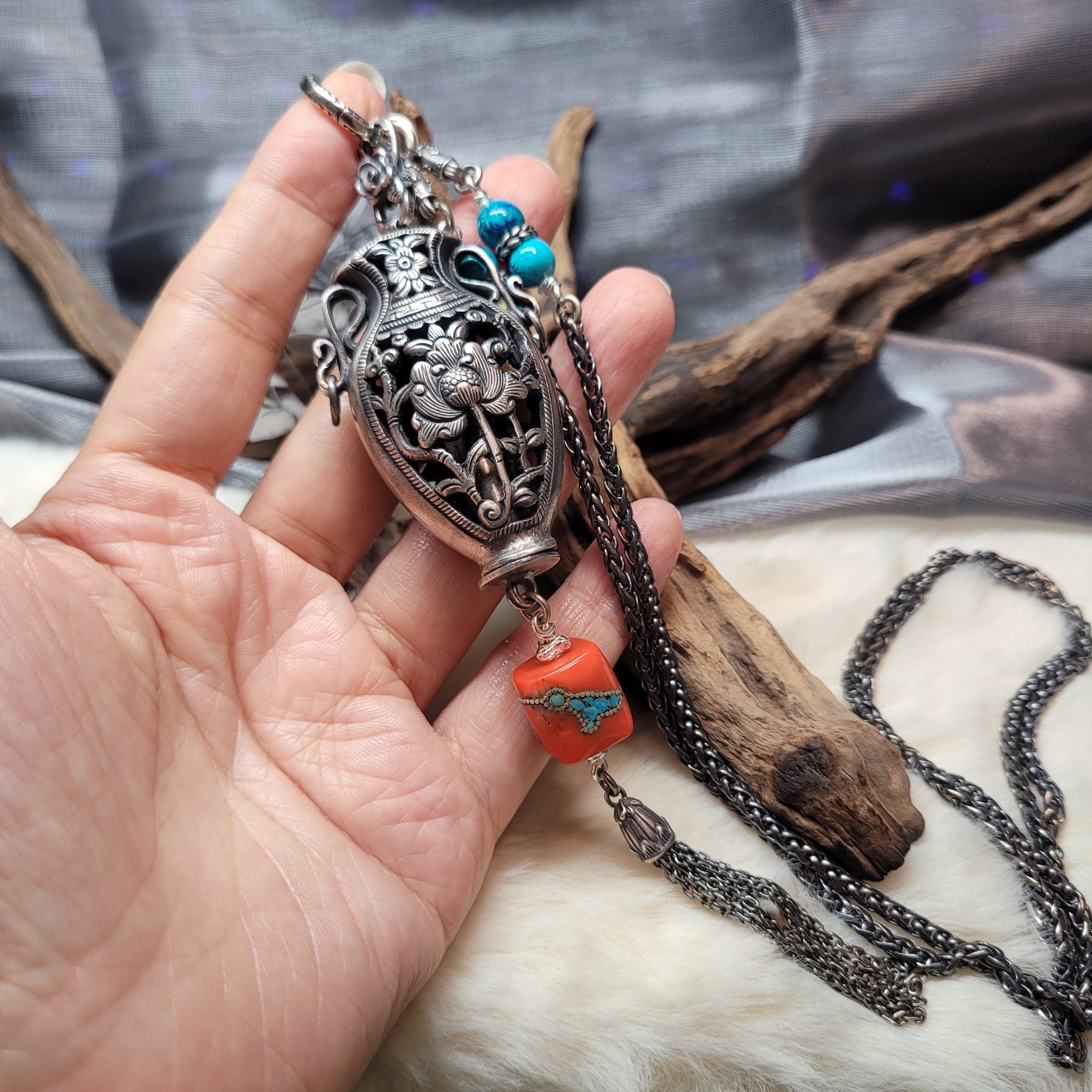• Load image into Gallery viewer, 1275 925銀寶瓶珊瑚珠吊墜