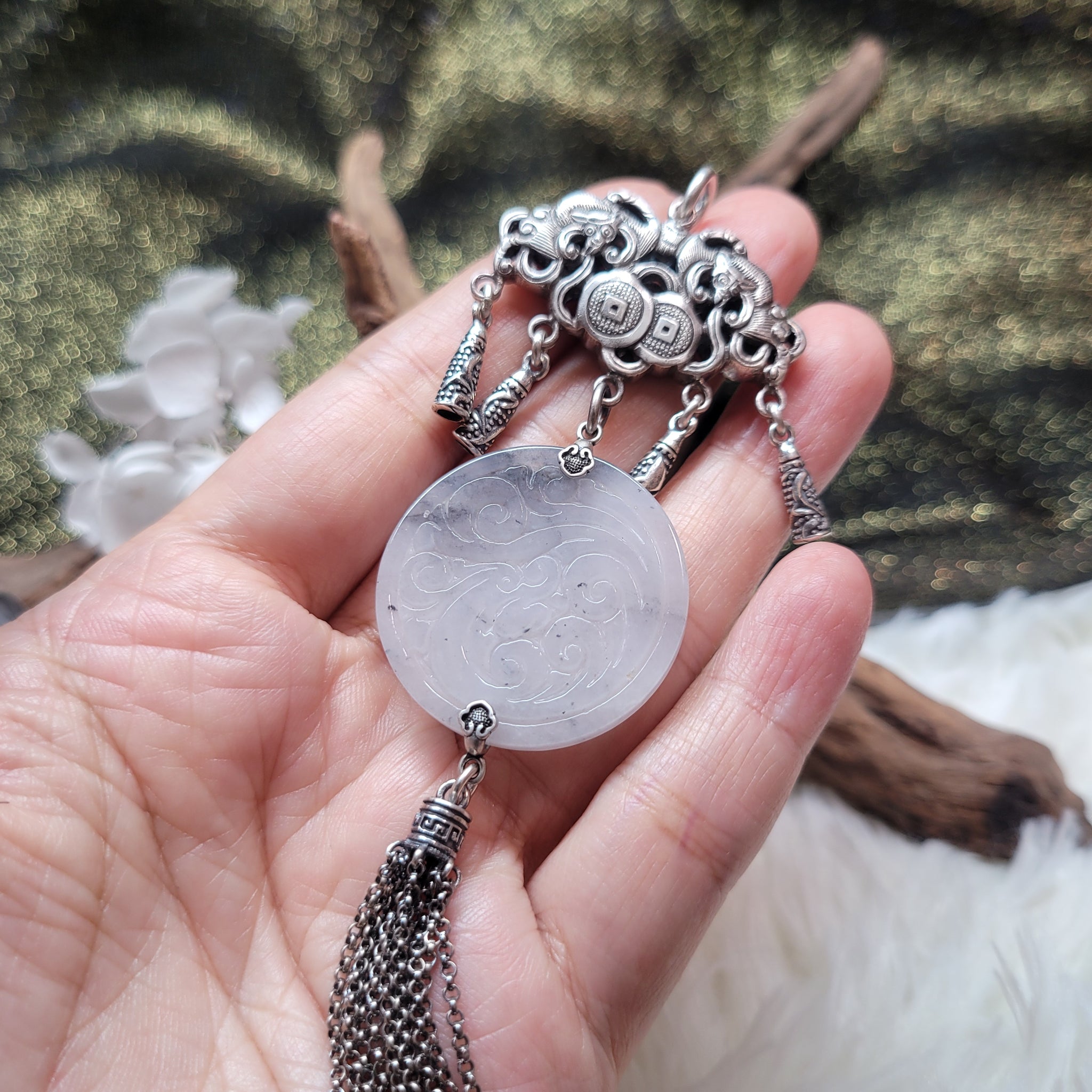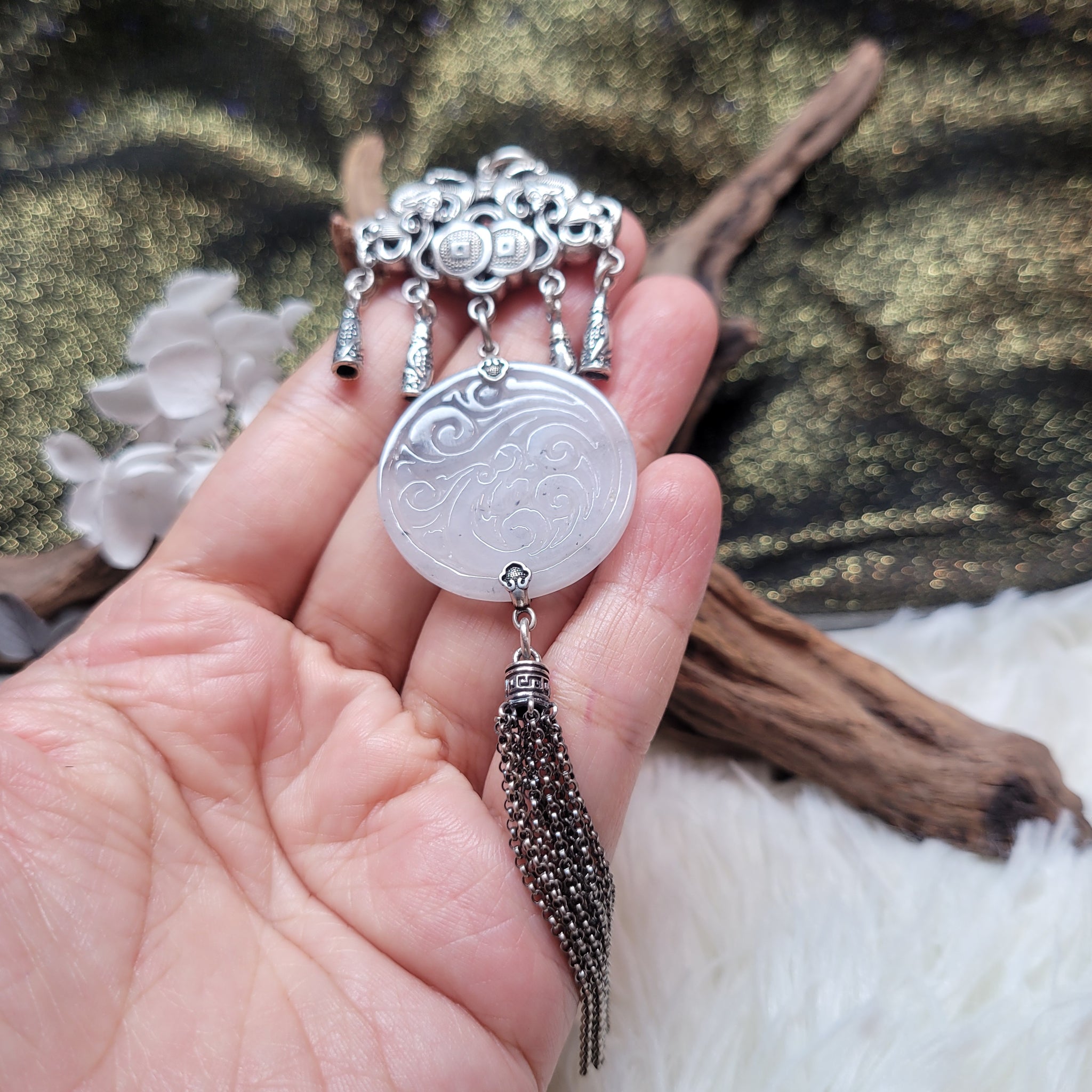 A貨翡翠烏雞圓牌925銀扣頭吊墜