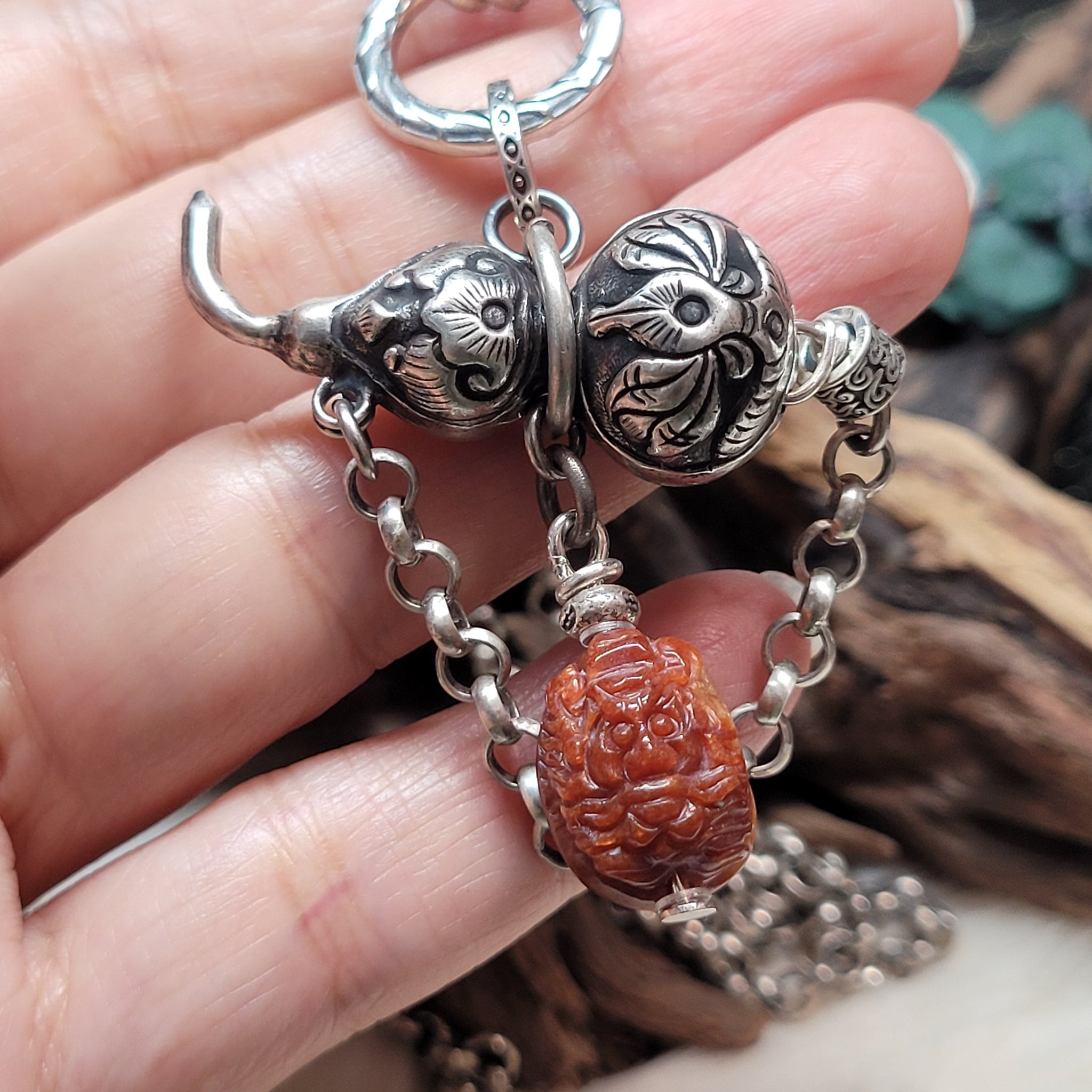 0211 紅翡鐘魁925銀葫蘆吊墜