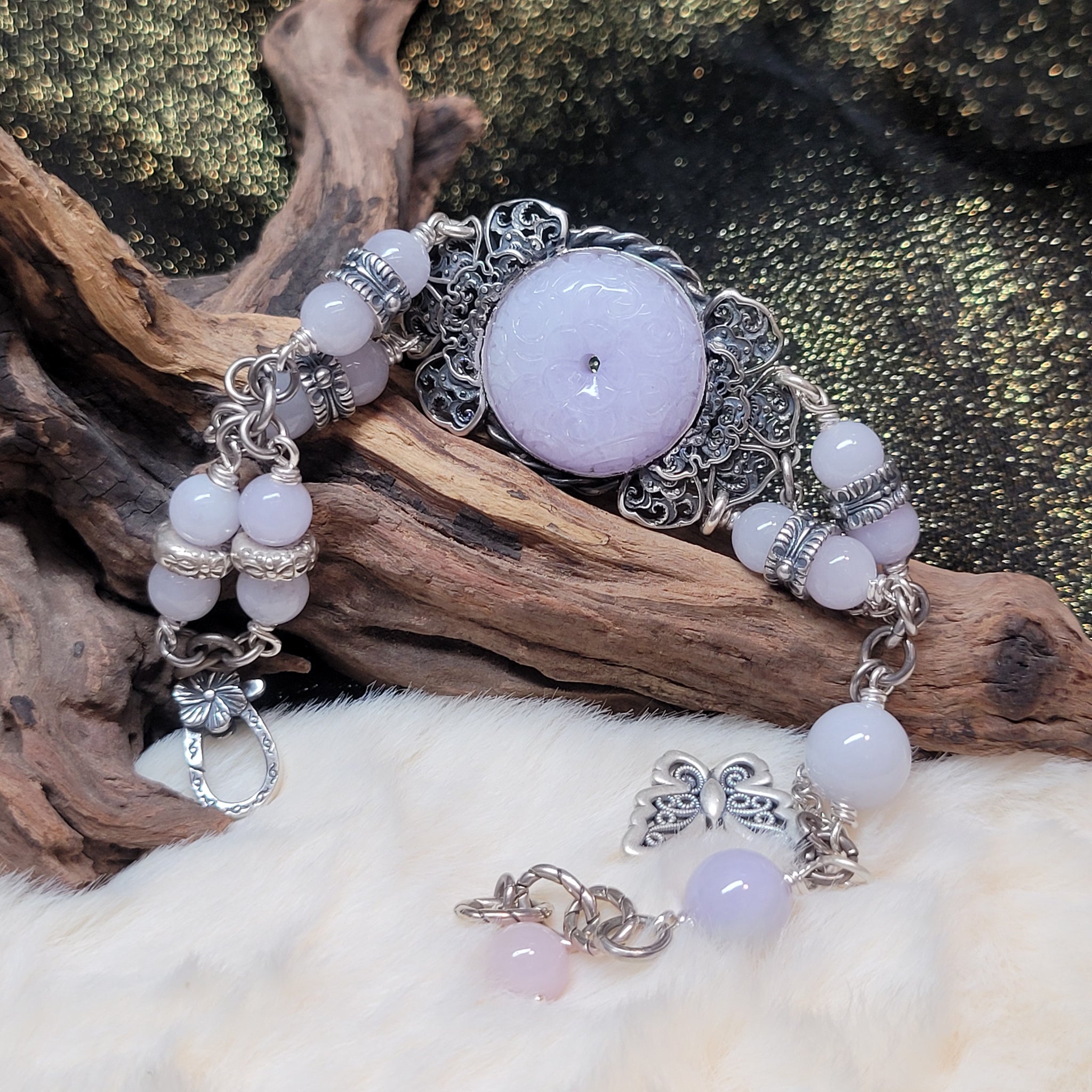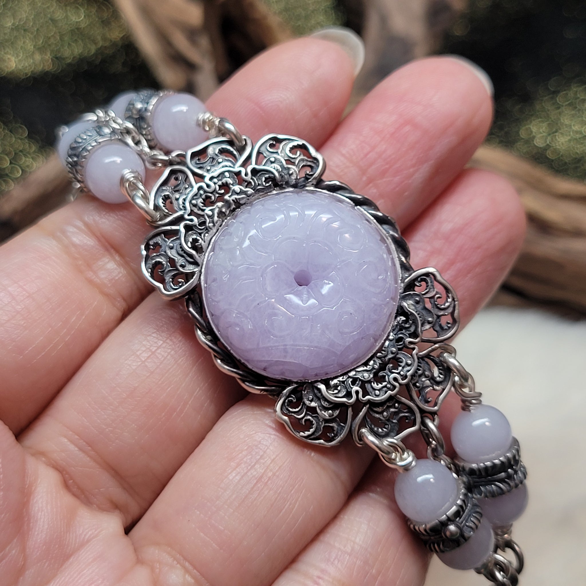 0626 緬甸A貨紫翡甜甜圈925銀手鏈