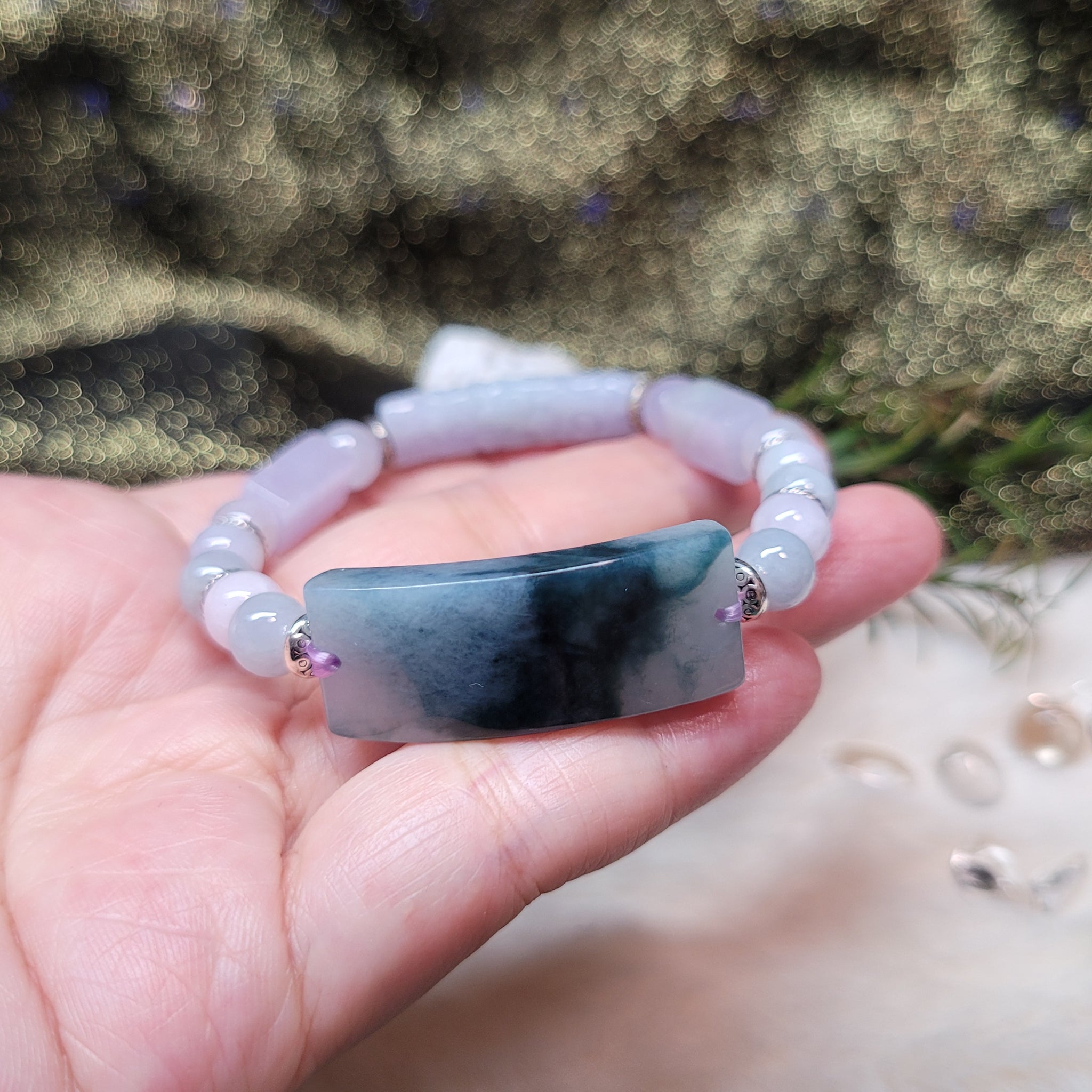 0711 天然緬甸A貨翡翠藍水飄花手牌手串