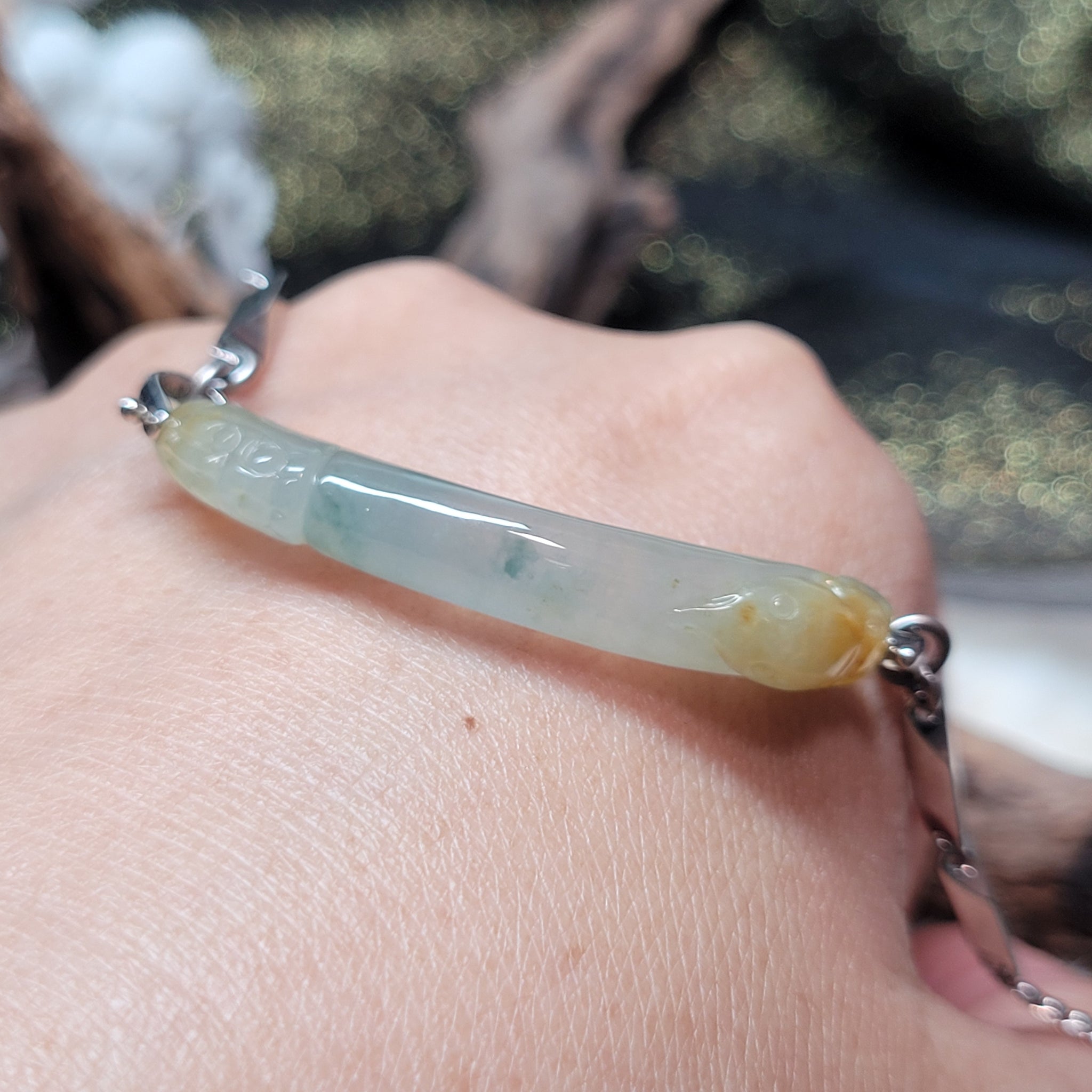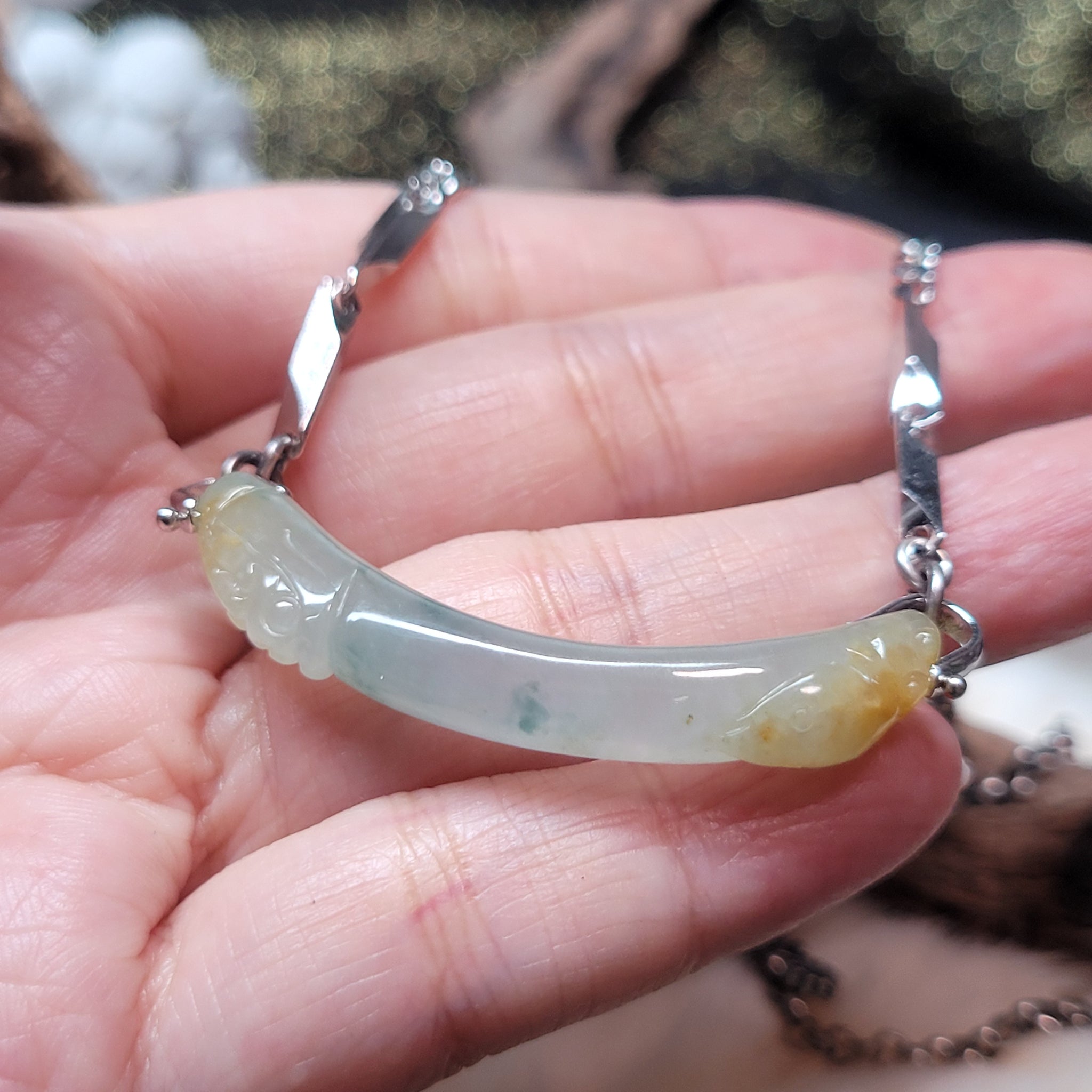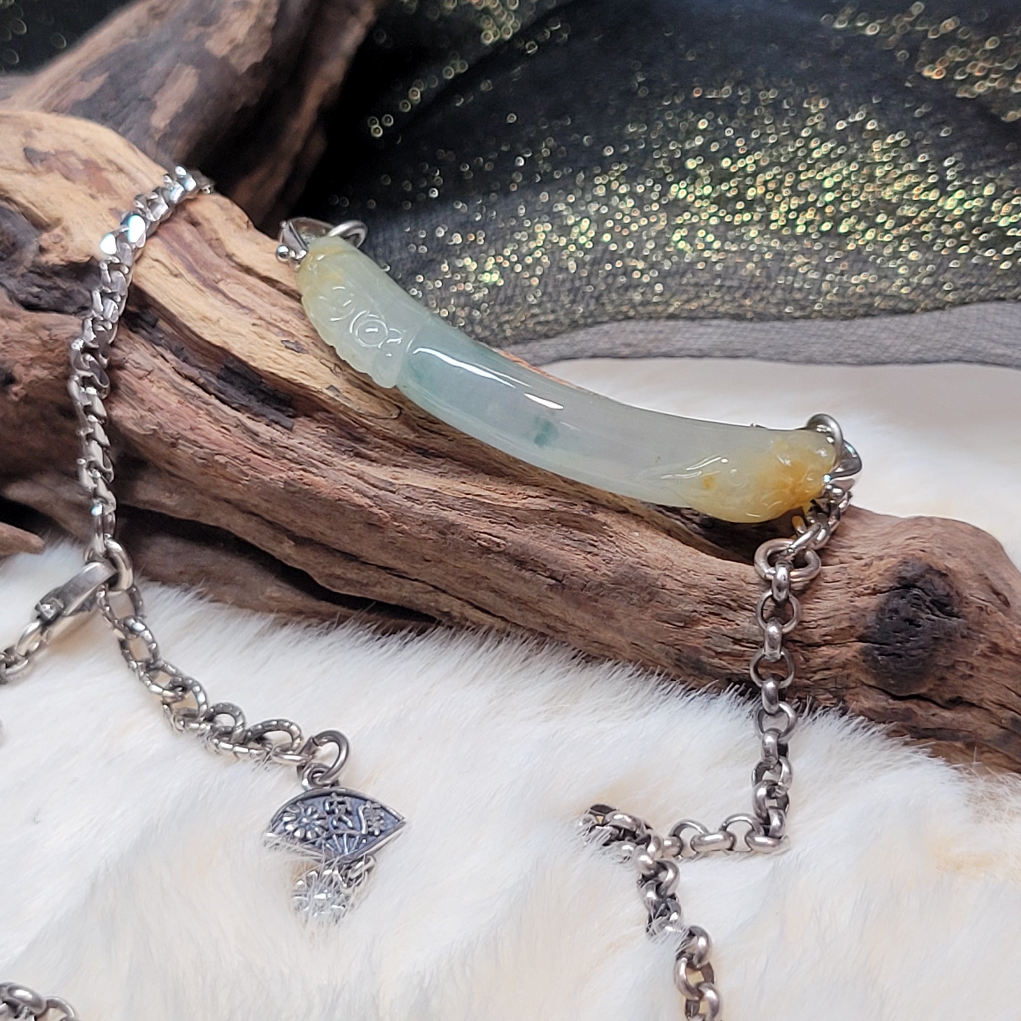 0790 冰黃飄花翡翠玉衡925銀吊墜